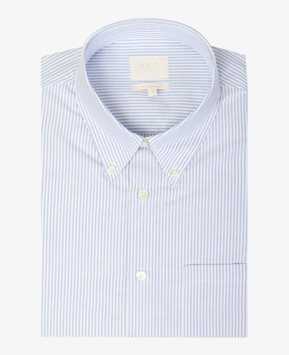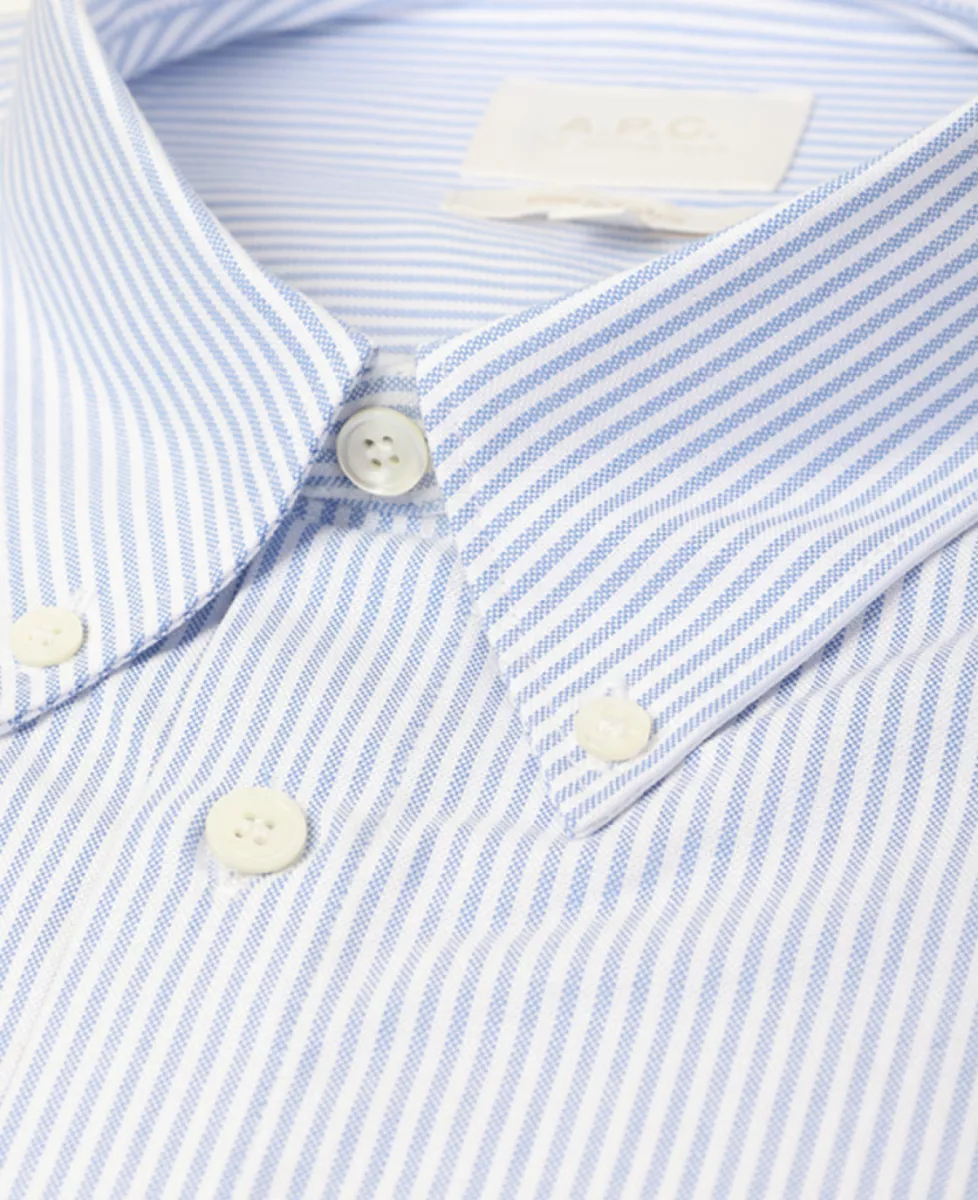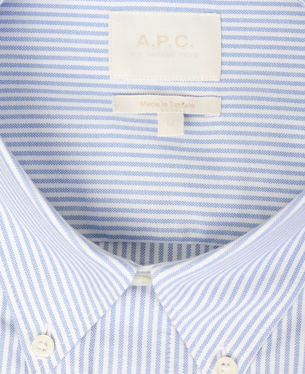 Overhemd in blauw/wit, gemaakt van biologisch katoen. Het overhemd heeft een rechte snit, subtiel aflopende schouders en een button-down kraag voor een casual chic uitstraling. Het geborduurde A.P.C.-logo op de borst geeft een verfijnde, minimalistische touch. Regular fit en ideaal te combineren met wide-leg jeans.