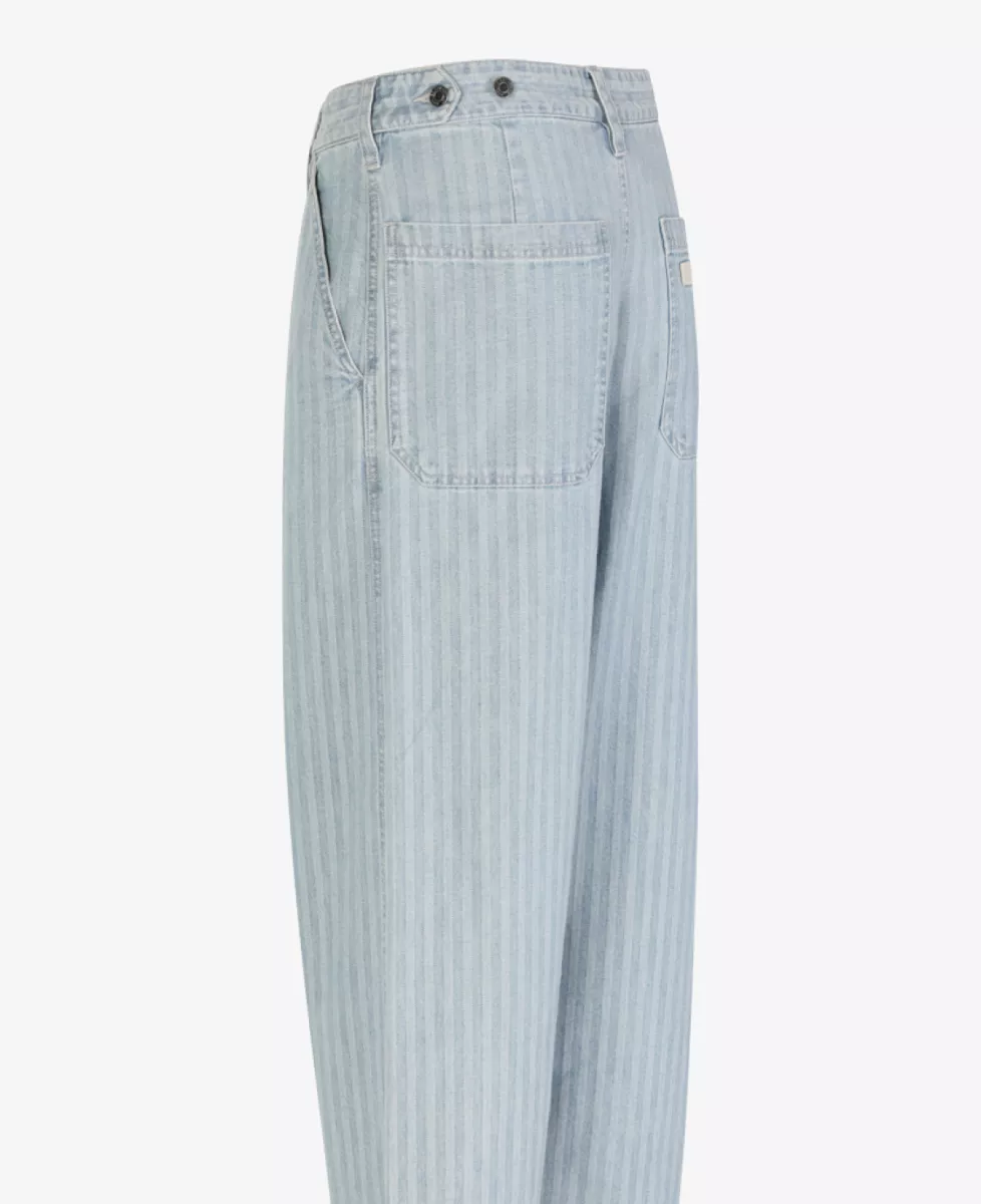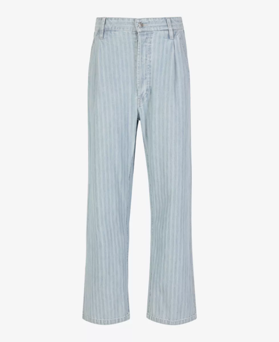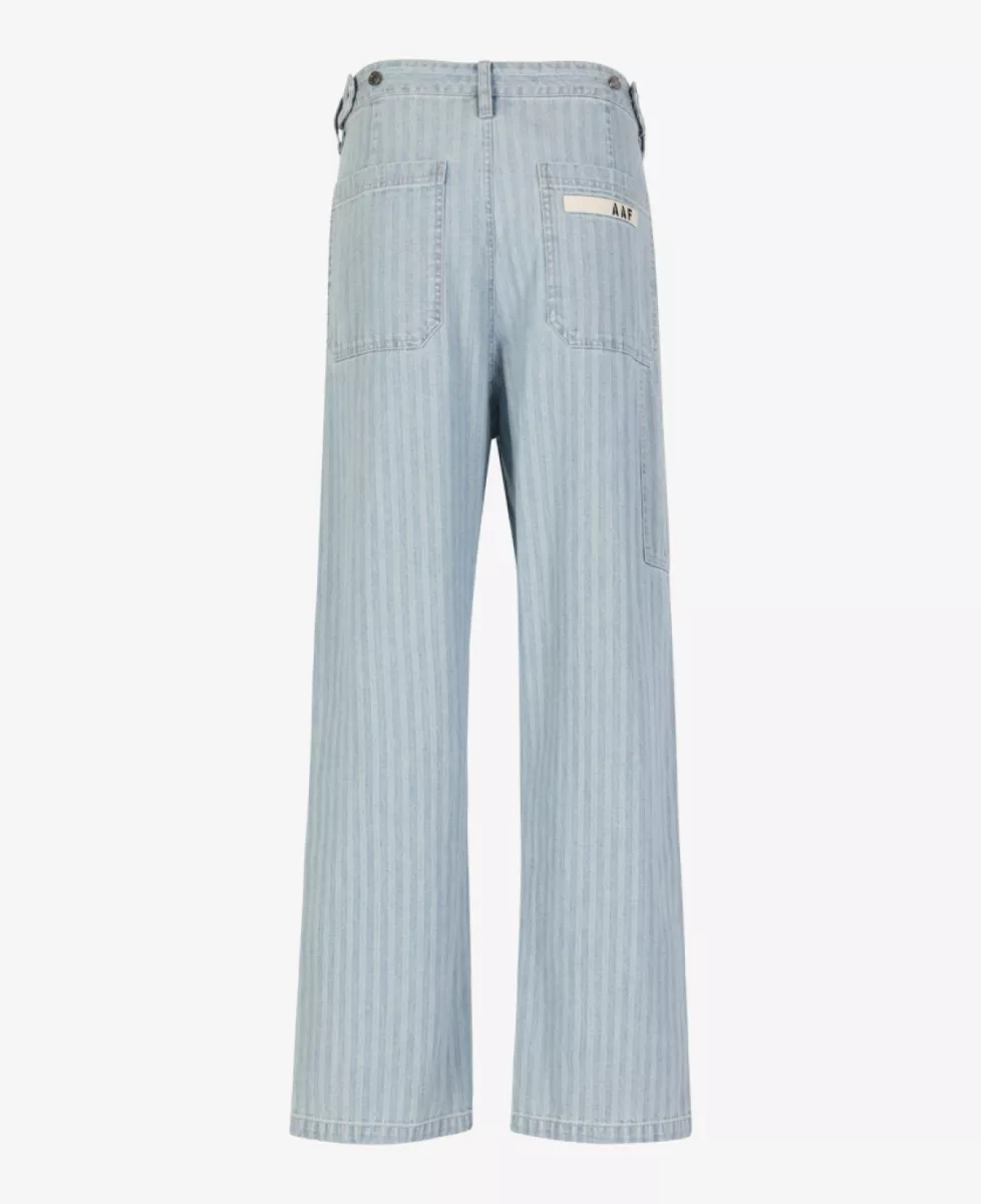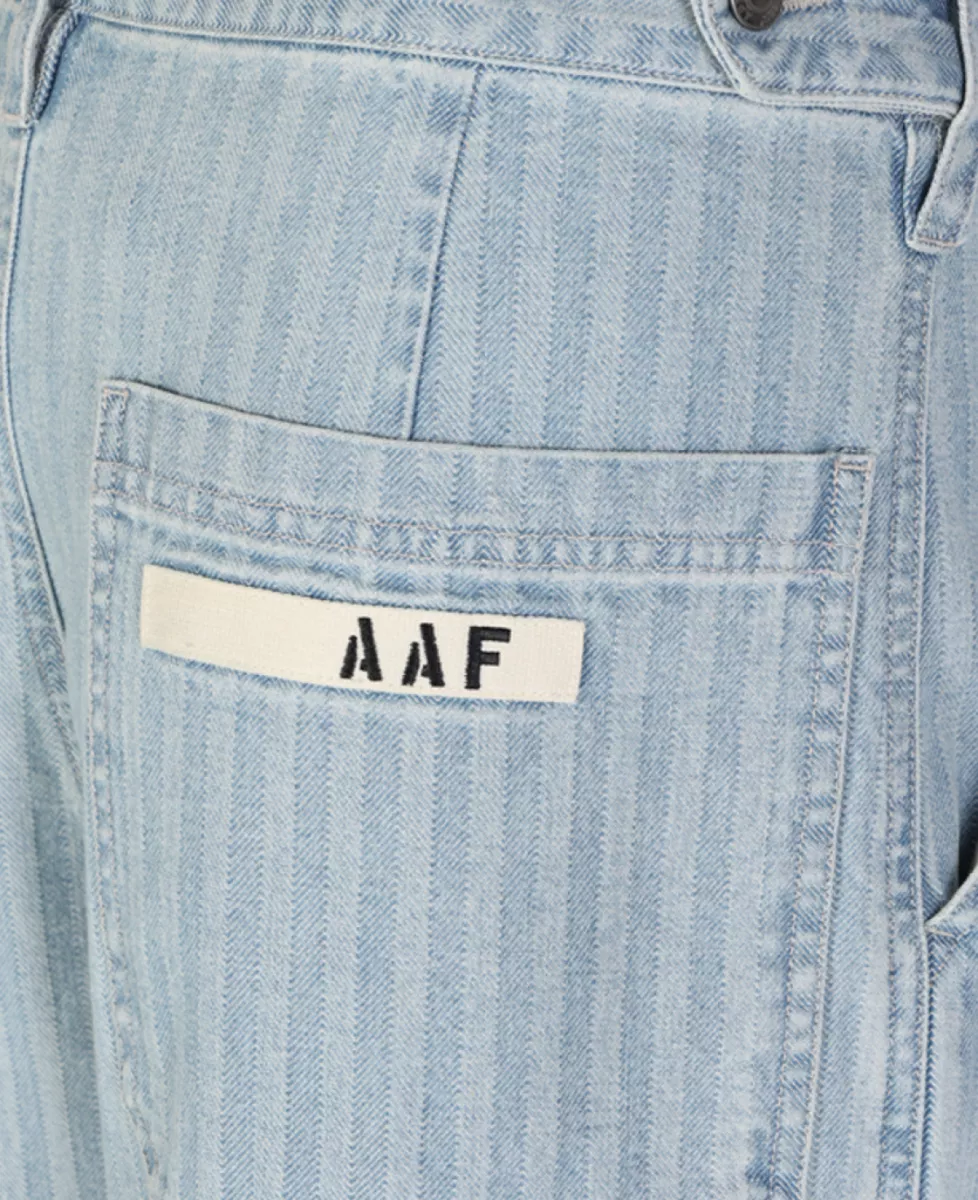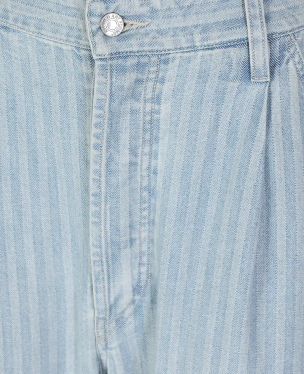 ‘Herringbone Construction Pants’ van Applied Art Forms in lichtblauw denim met streeppatroon en baggy pasvorm.