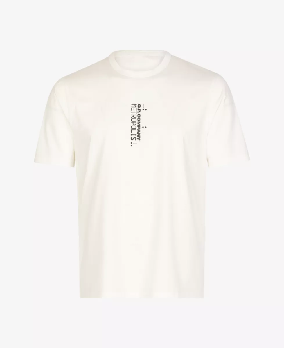 Shirt van CP Company met een opvallende print op de achterzijde en het CP Company Metropolis-logo op de voorkant. Het ontwerp heeft een ronde hals en een minimalistische stretch, wat zorgt voor een comfortabele pasvorm. Gemaakt van 100% katoen met een coole uitstraling.