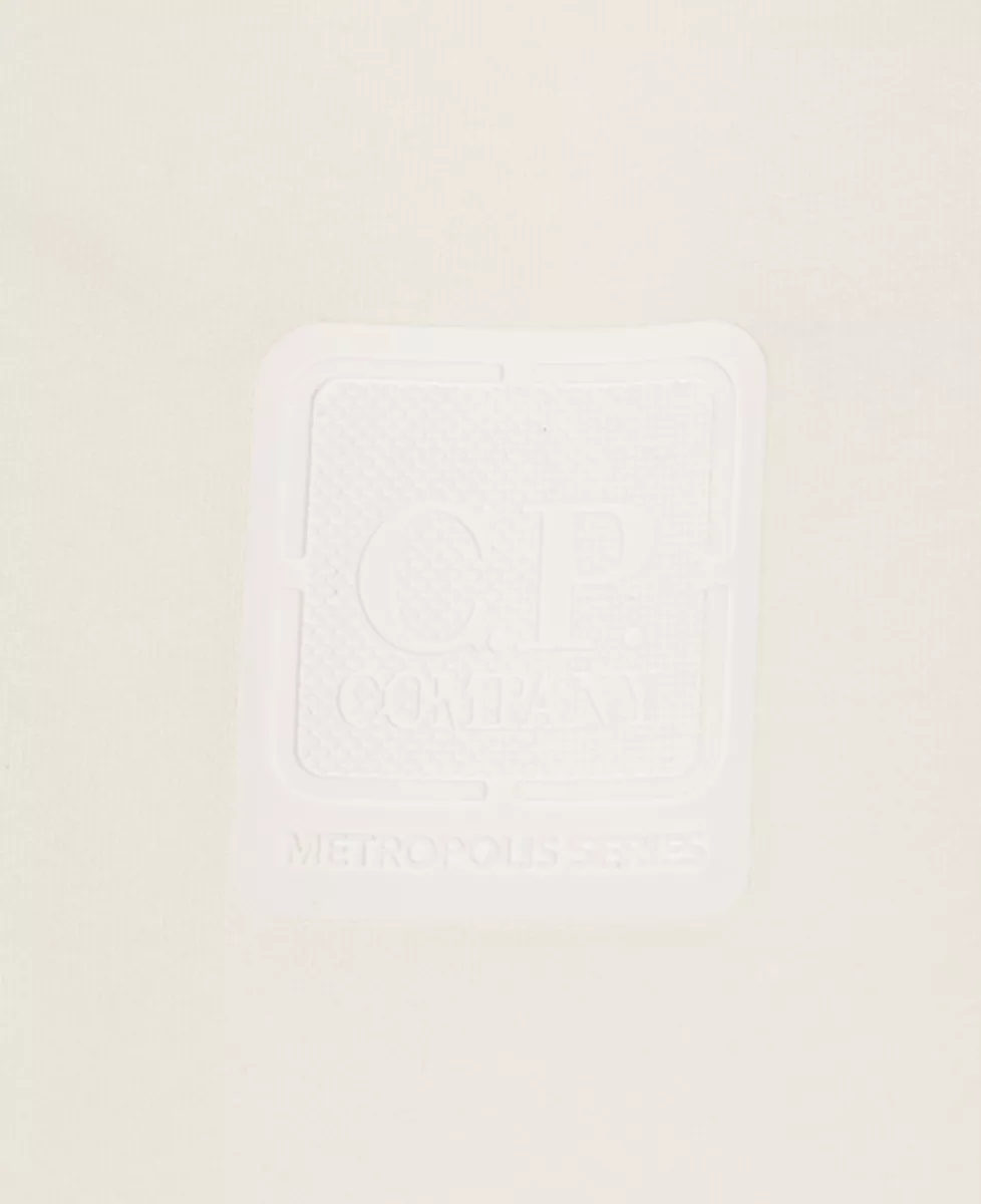 C.P. Company sweater met ronde hals in wit, gemaakt van katoen met logo op het voorpand.