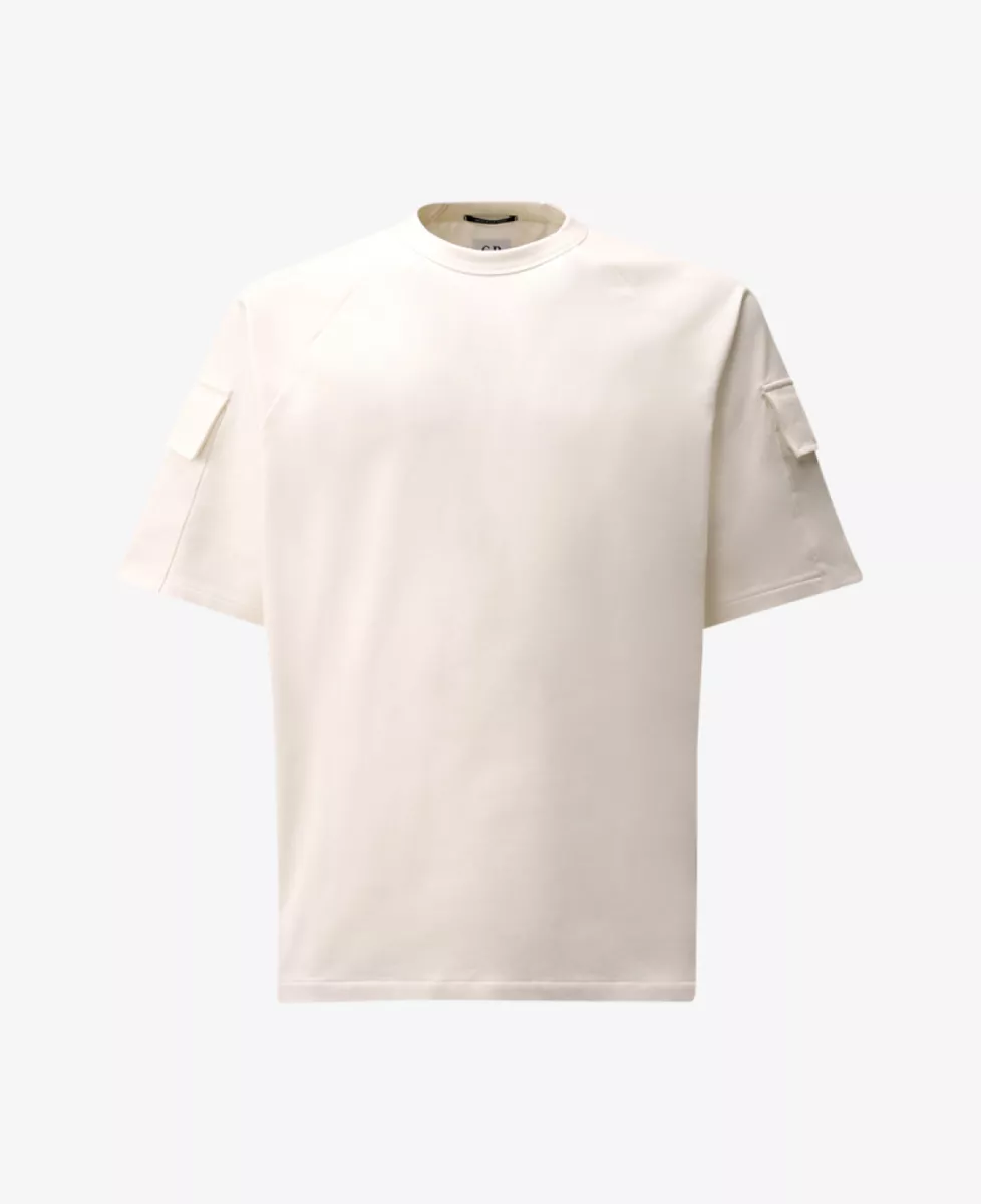 Dit T-shirt van C.P. Company is uitgevoerd in een stevige, dikkere stof die zorgt voor een hoogwaardige en comfortabele fit. Het model heeft een ronde hals en korte mouwen en is afgewerkt met functionele zakken op beide mouwen. De zakken sluiten met klittenband, waarbij op de linker mouw een subtiel C.P. Company-logo in dezelfde kleur is verwerkt. Een stoer en modern design met oog voor detail en kwaliteit.