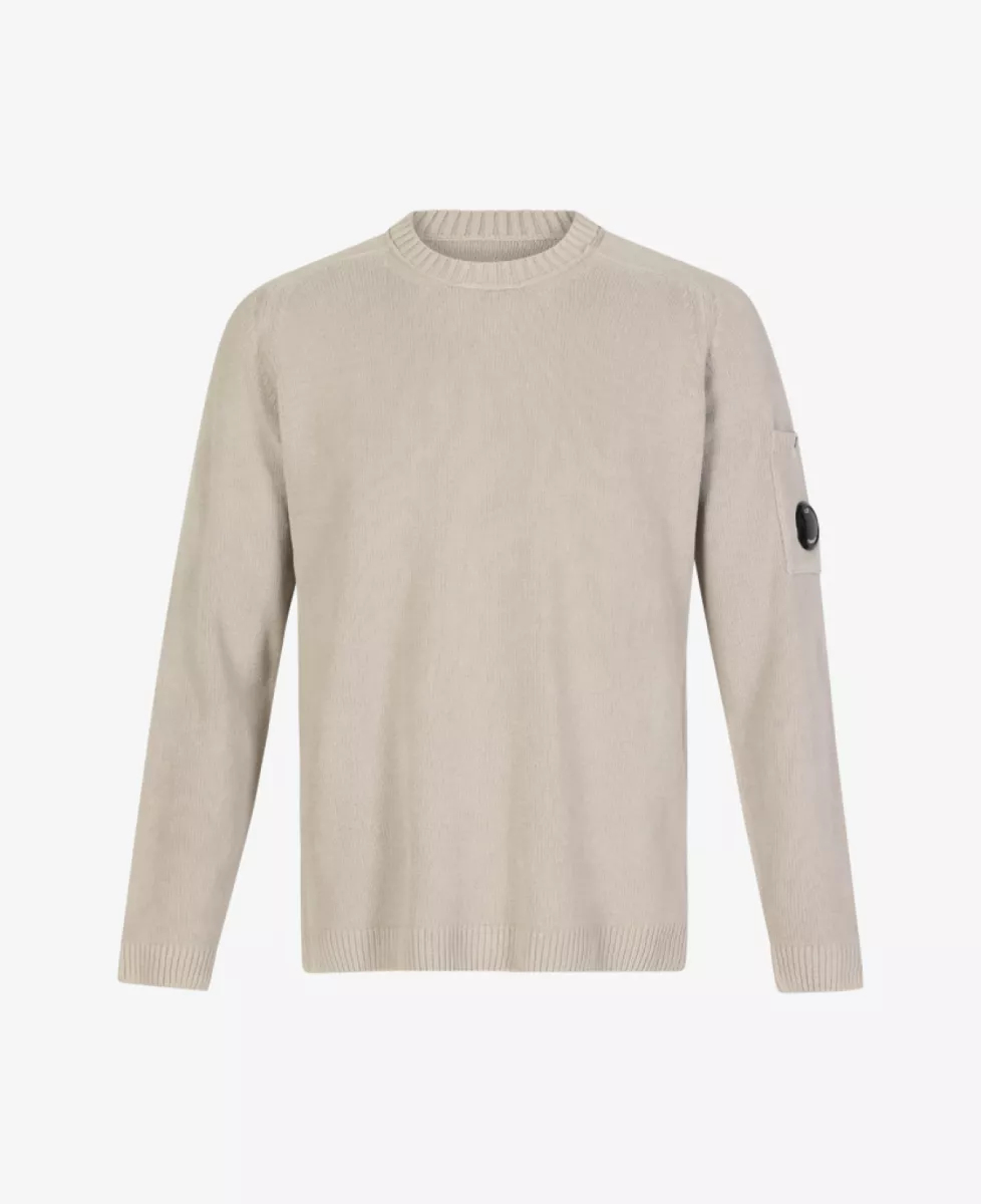 Trui met ronde hals van C.P. Company in middelgrijze kleur, gemaakt van 100% zacht katoen. De trui heeft het logo op de mouw.