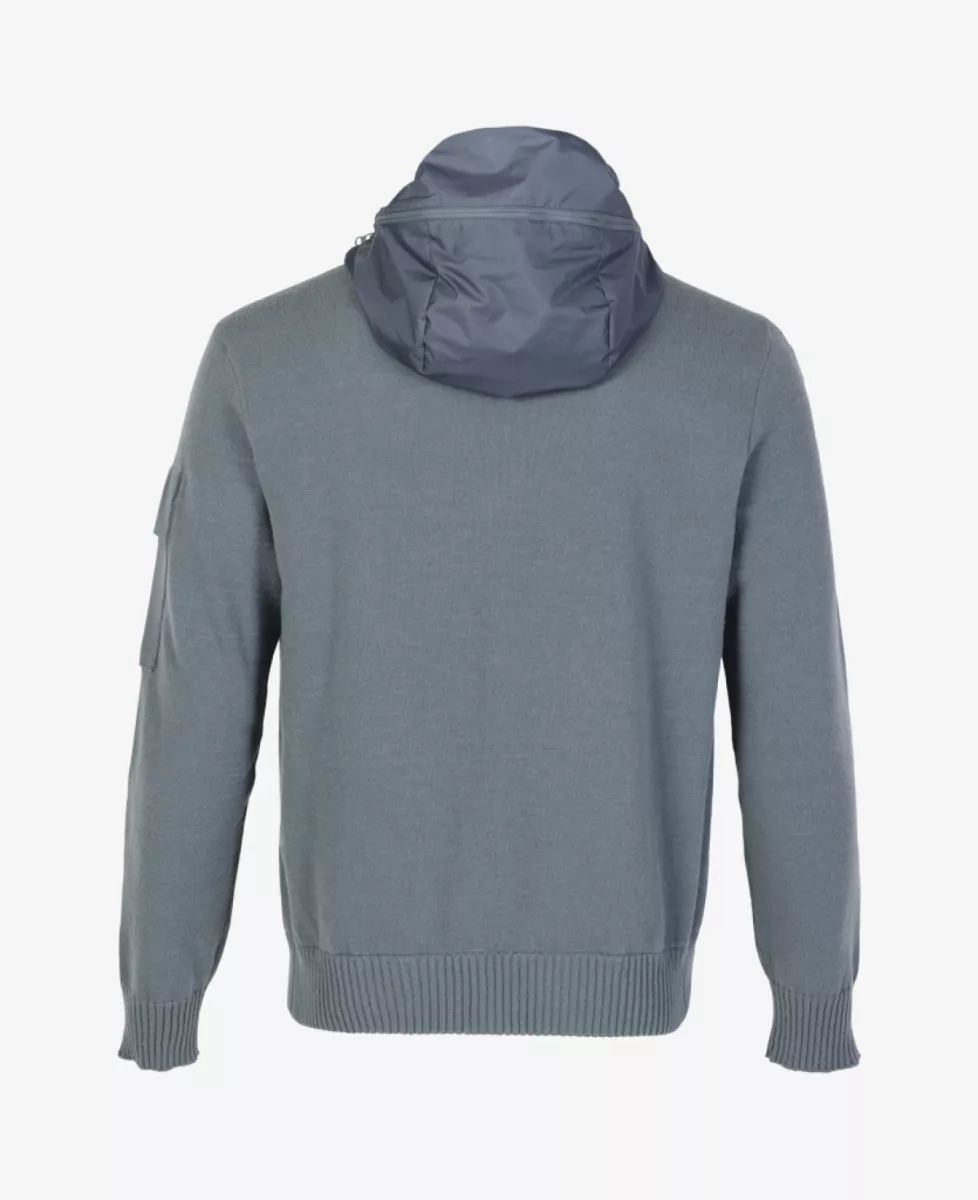 Jas van C.P. Company met capuchon, uitgevoerd in een technische mix van materialen en voorzien van functionele details. De jas heeft een dubbele ritssluiting, steekzakken en een kenmerkende armzak met klep waarop het C.P. Company-logo is aangebracht. De capuchon is gemaakt van een andere stof dan de rest van de jas en is verstelbaar met trekkoorden. Riboorden aan de uiteindes zorgen voor extra comfort en een sportieve afwerking.