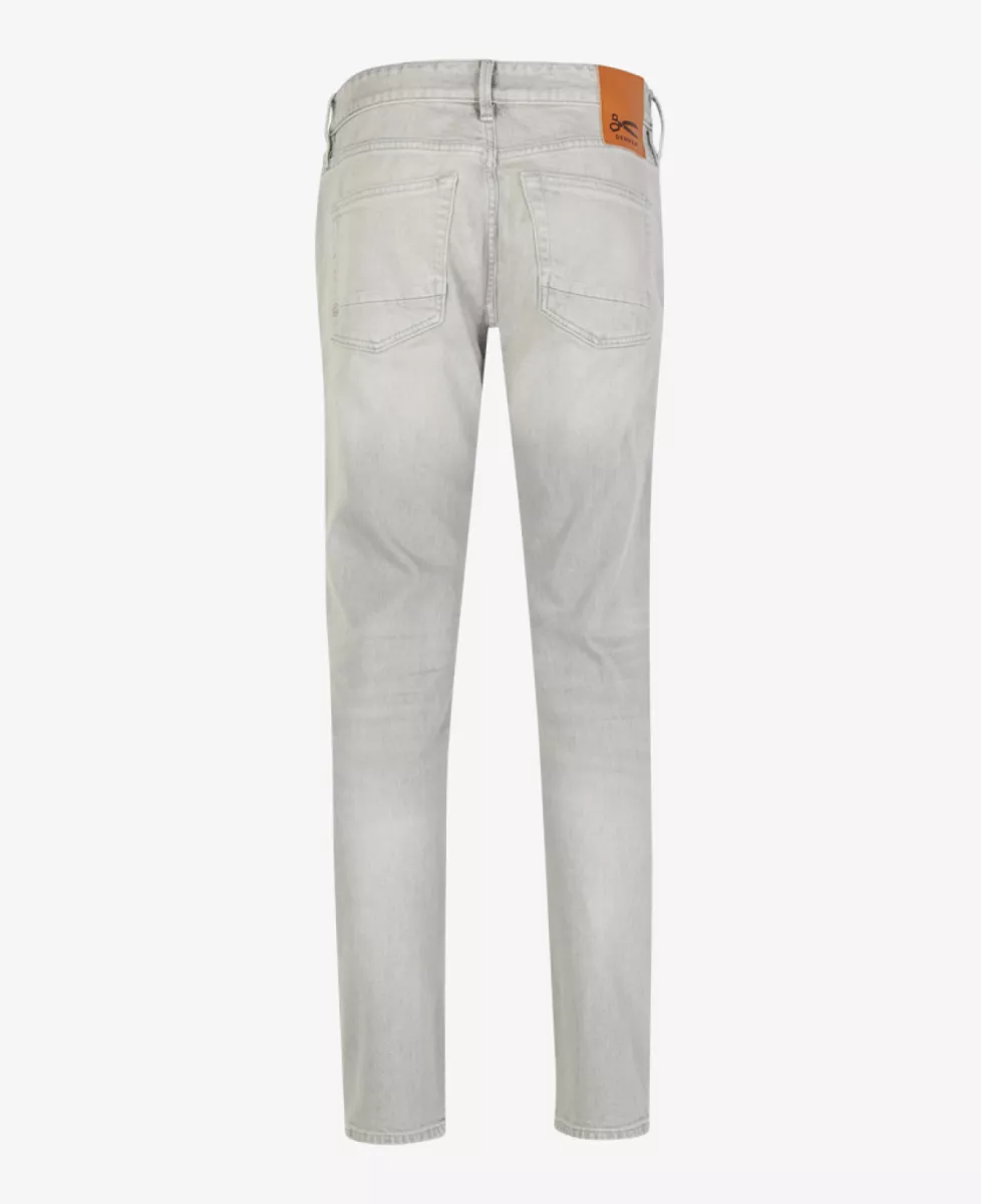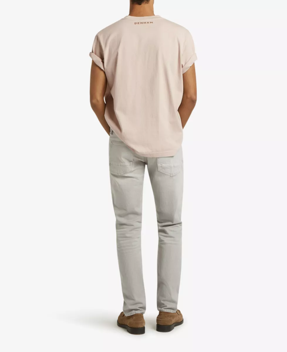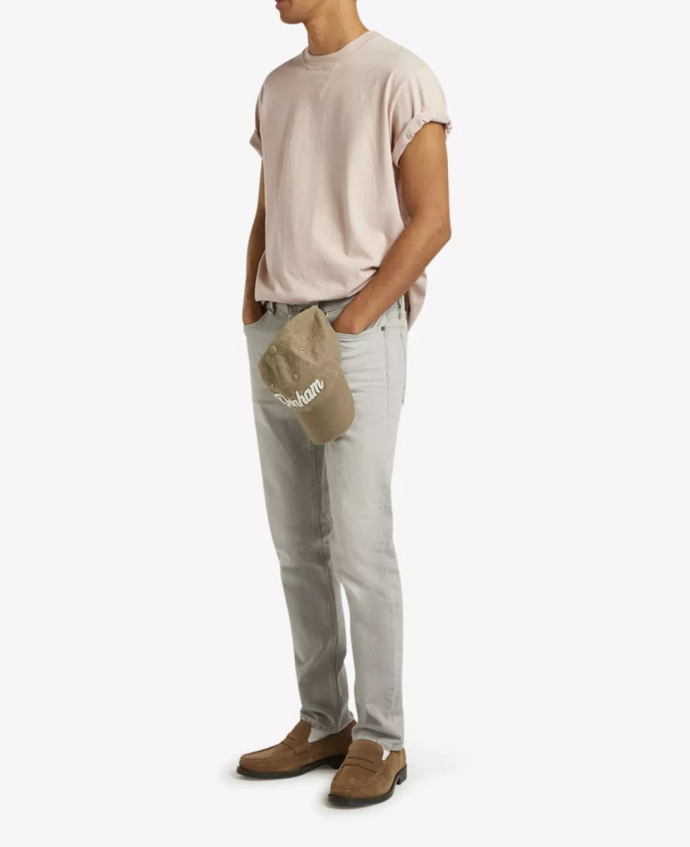 Deze klassieke five-pocket slim fit jeans heeft een slanke pasvorm van mid-rise taille tot enkel. De grijze kleur met subtiele wassing en tonale stiksels, gecombineerd met zwarte knopen en rivets, geeft de jeans een stoere en eigentijdse uitstraling.