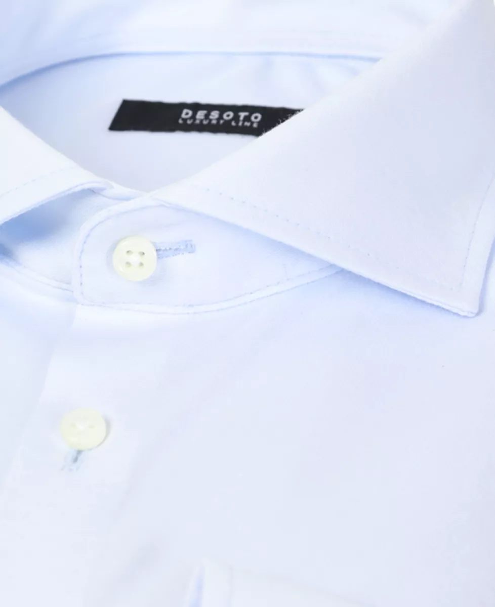 Desoto overhemd in lichtblauw, gemaakt van 100% katoen. Dit overhemd heeft een nauwsluitende pasvorm en klepzakken op de borst. Het materiaal bevat stretch, wat een comfortabele pasvorm geeft.