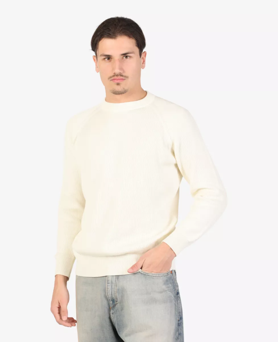 Deze fijn ribgebreide crewneck trui in ecru van Filippo De Laurentiis is gemaakt van comfortabel katoen. De zorgvuldig afgewerkte details geven de trui een hoogwaardige uitstraling.