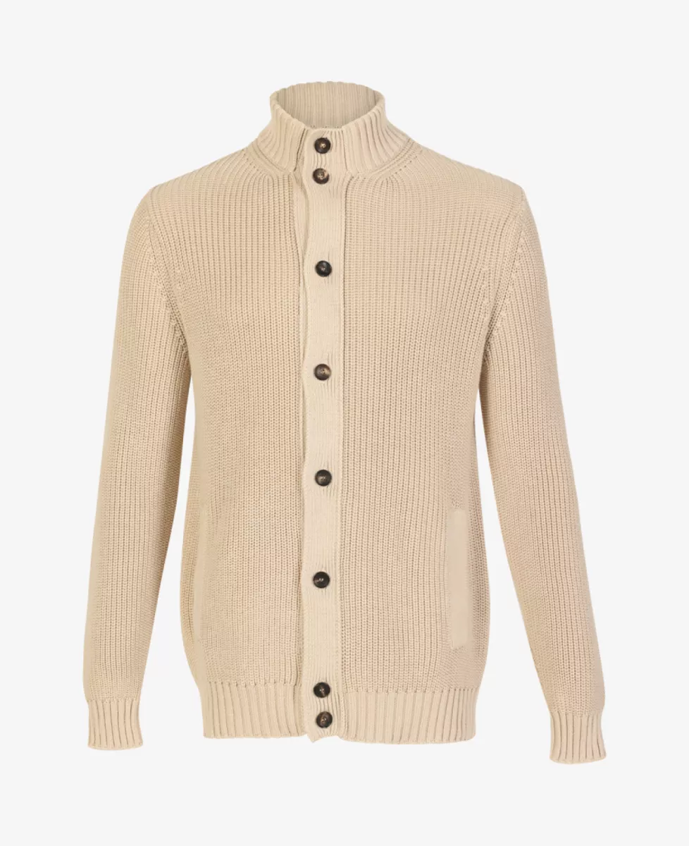 Gebreid vest van Filippo De Laurentiis in beige. Dit vest is gemaakt van 100% hoogwaardig katoen, heeft een opstaande kraag, knoopsluiting en steekzakken.
