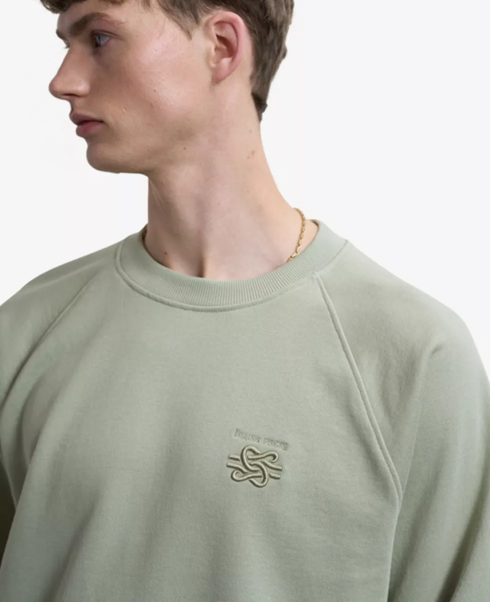 Sweatshirt van Filling Pieces in lichtgroene kleur, gemaakt van biologisch katoen. Dit sweatshirt heeft een ronde hals, losvallende pasvorm en logodetail op de borst.