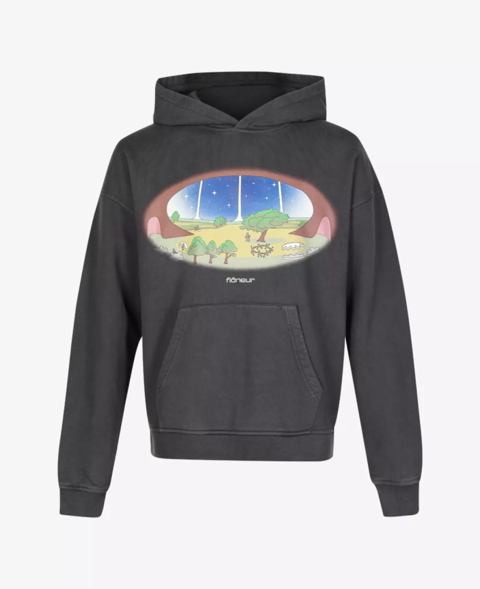 Hoodie van Flaneur in een middelgrijze kleur. Deze hoodie heeft een print op het voorpand en een losse pasvorm.