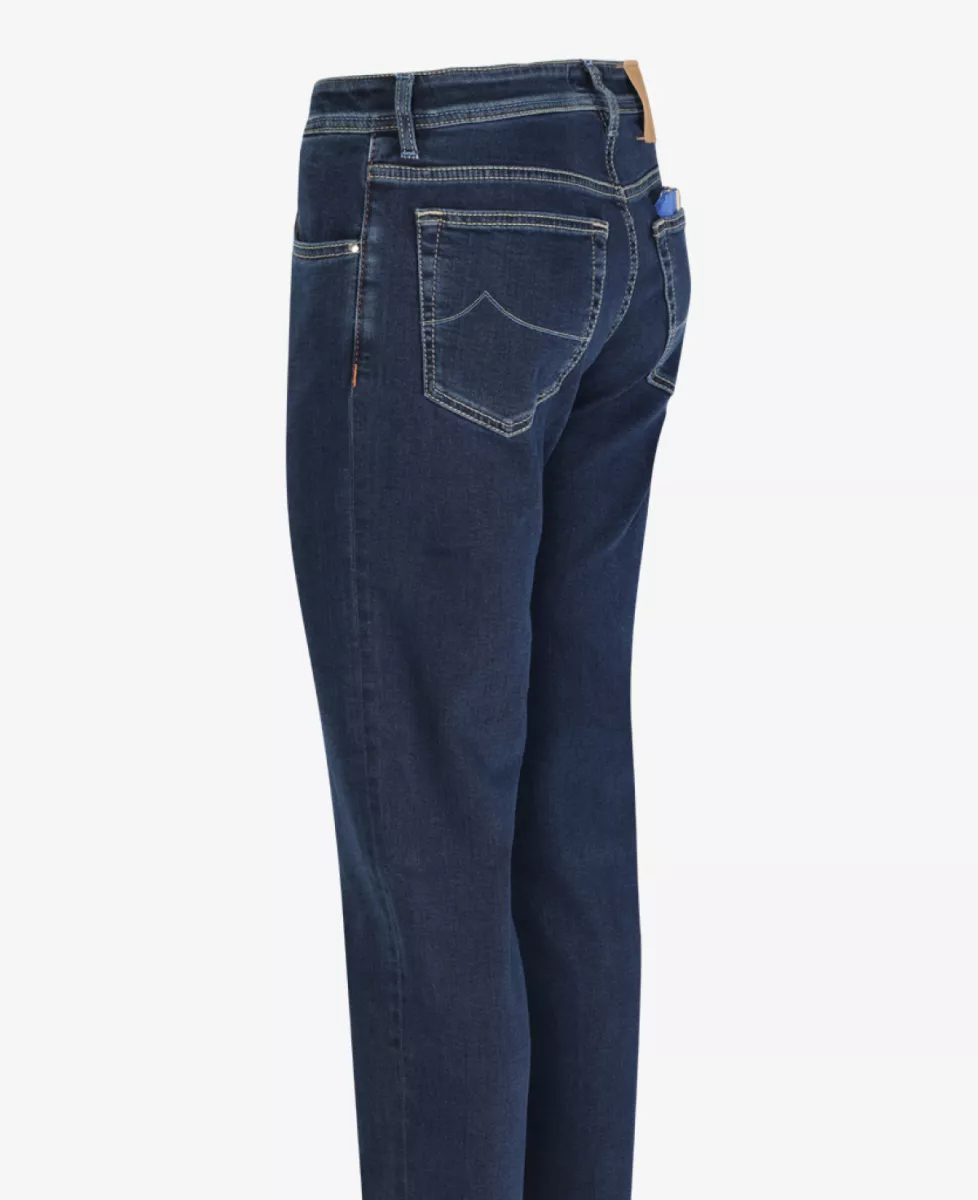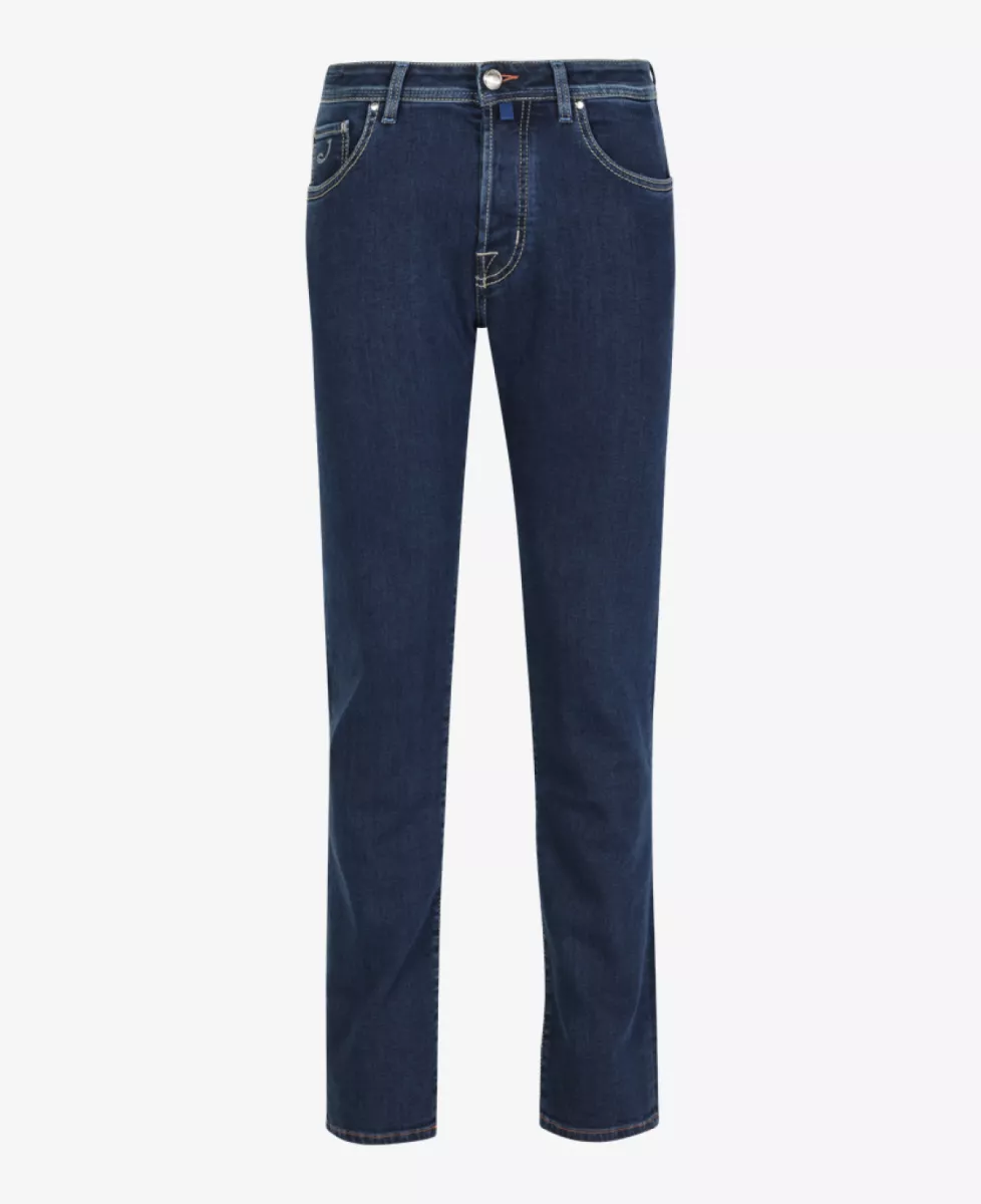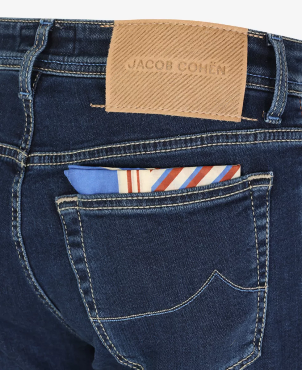 Jeans van Jacob Cohen in een donkerblauwe wassing. Deze broek heeft een normale pasvorm en bevat veel stretch.