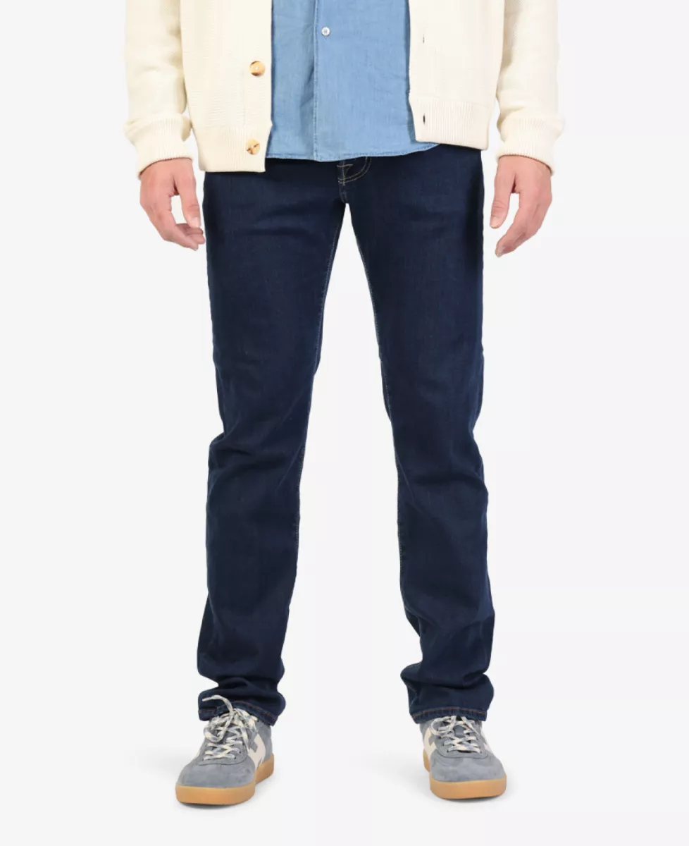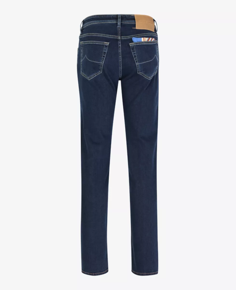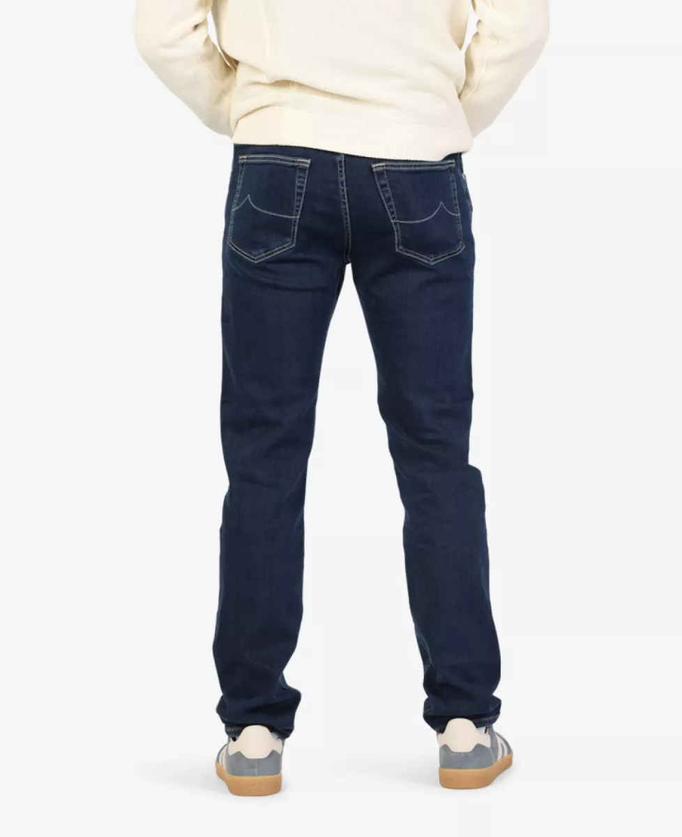 Jeans van Jacob Cohen in een donkerblauwe wassing. Deze broek heeft een normale pasvorm en bevat veel stretch.