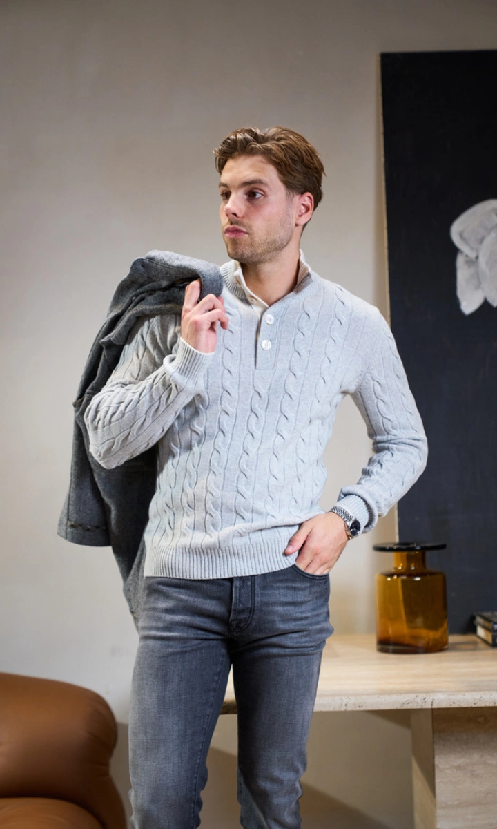 Gran Sasso Gran Sasso Mock zip met knoop - Grijs