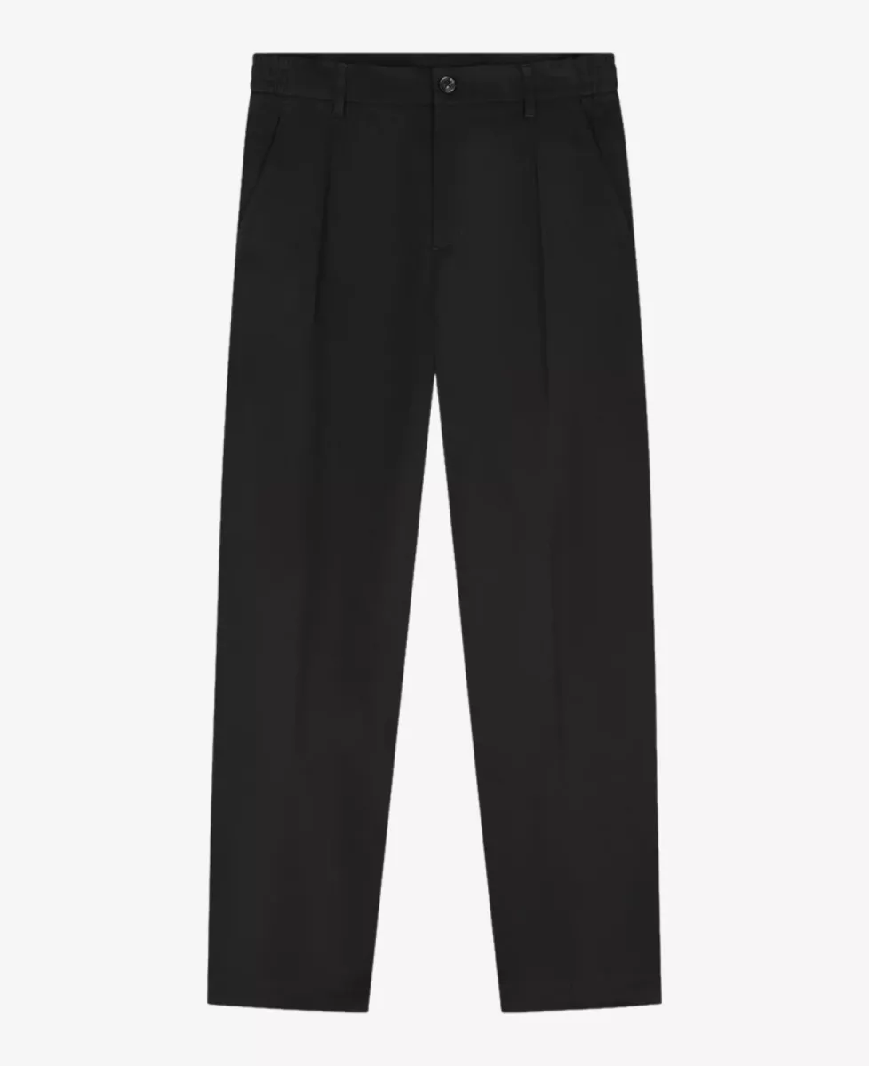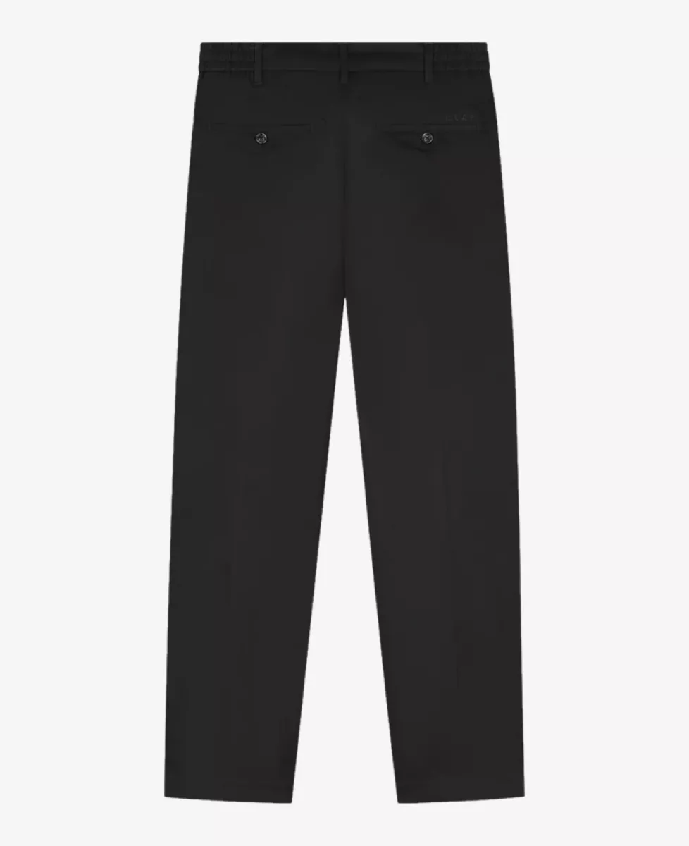 De Regular Twill Pleated Chino in Charcoal is een moderne interpretatie van een klassieker. Met strakke afwerking en doordachte proporties biedt deze chino zowel stijl als functionaliteit. Het subtiele logo-borduursel onder de achterzak voegt een verfijnd detail toe.