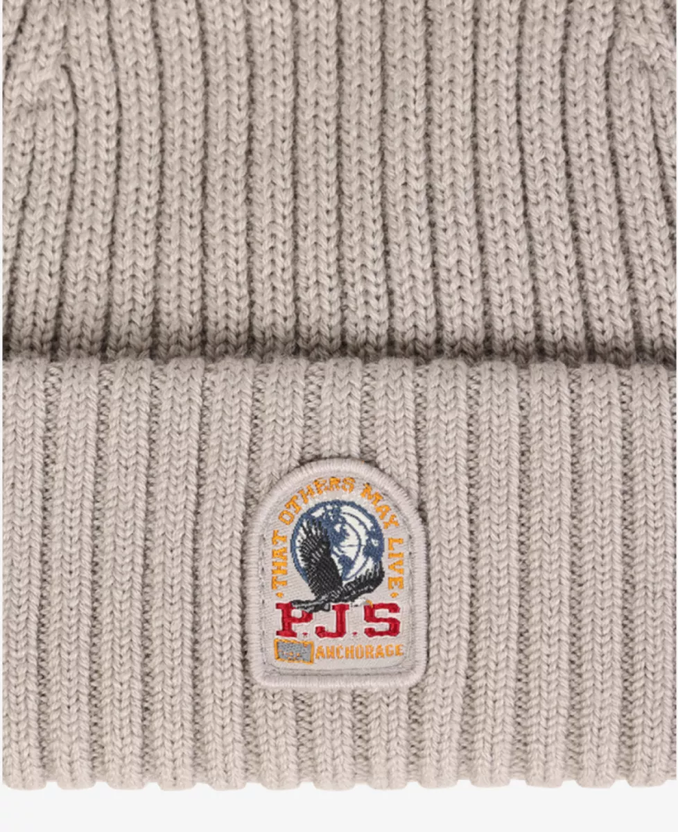 Muts van Parajumpers, gemaakt van een warme en zachte merinowolmix. Voorzien van een klein iconisch logo op de voorkant. Het ontwerp is compact en sluit goed aan, ideaal voor koude dagen.
