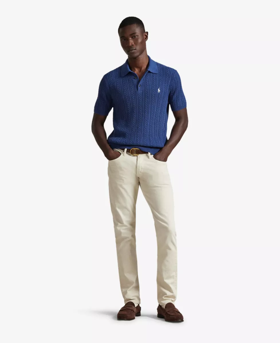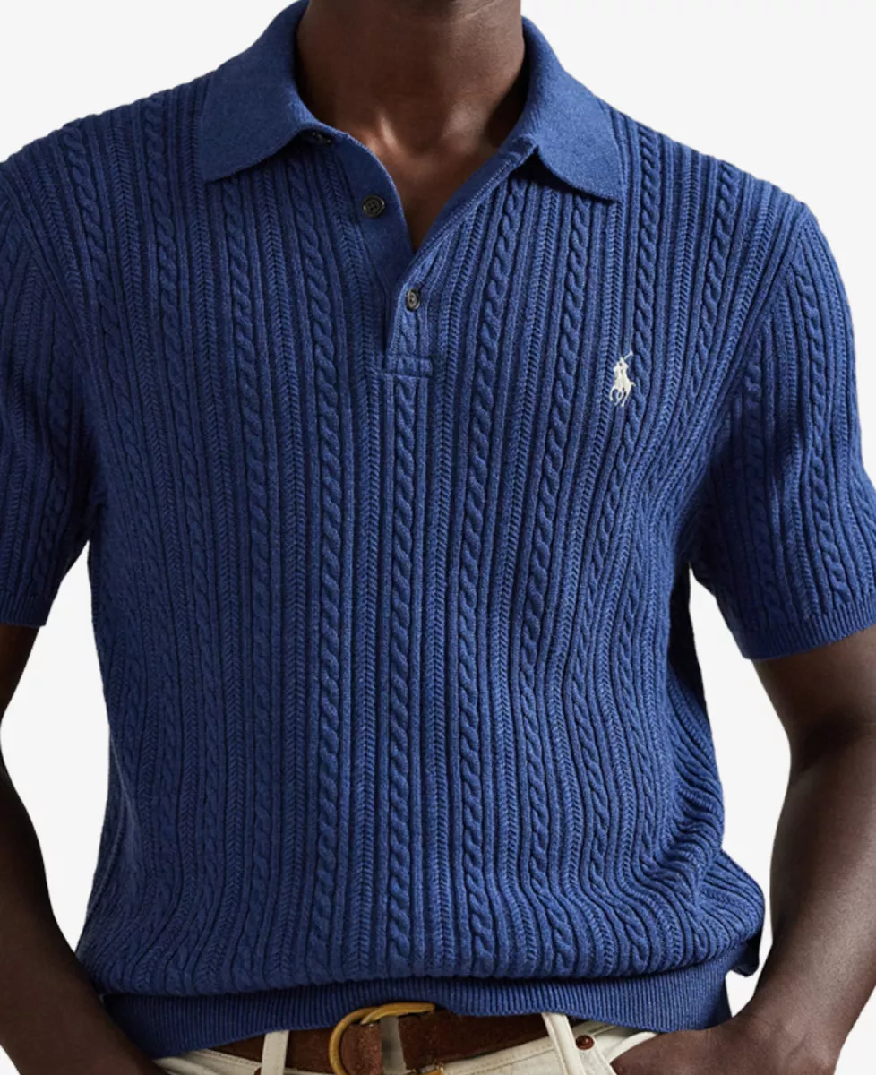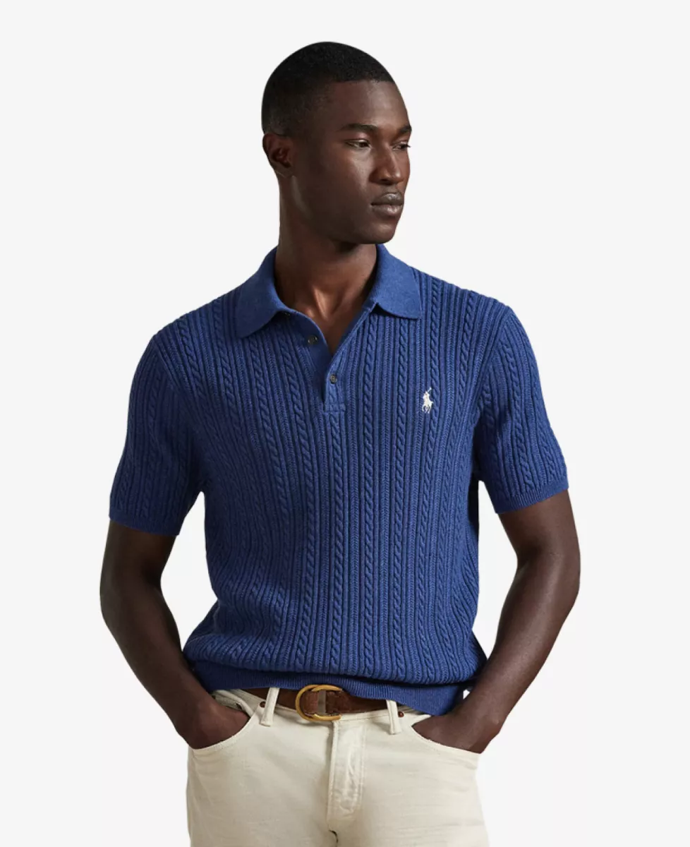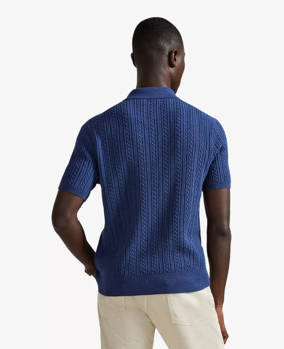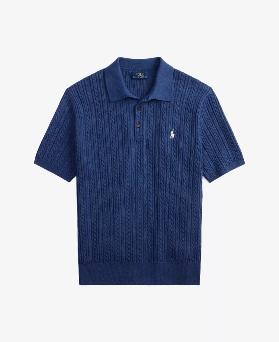 Ralph Lauren Knitted Polo in donkerblauw, gemaakt van 100% katoen met kabelpatroon.