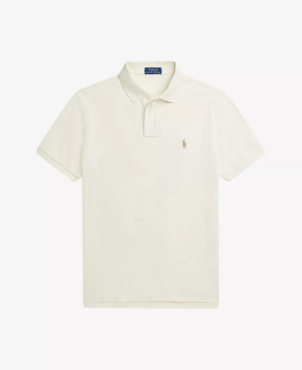 Ralph Lauren Polo in ecru. Dit is een Custom Slim Fit: een nauwsluitend model dat tussen de Classic fit en Slim fit in zit. De mouwen vallen nauwsluitend rond de biceps.