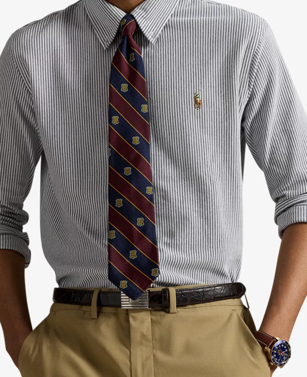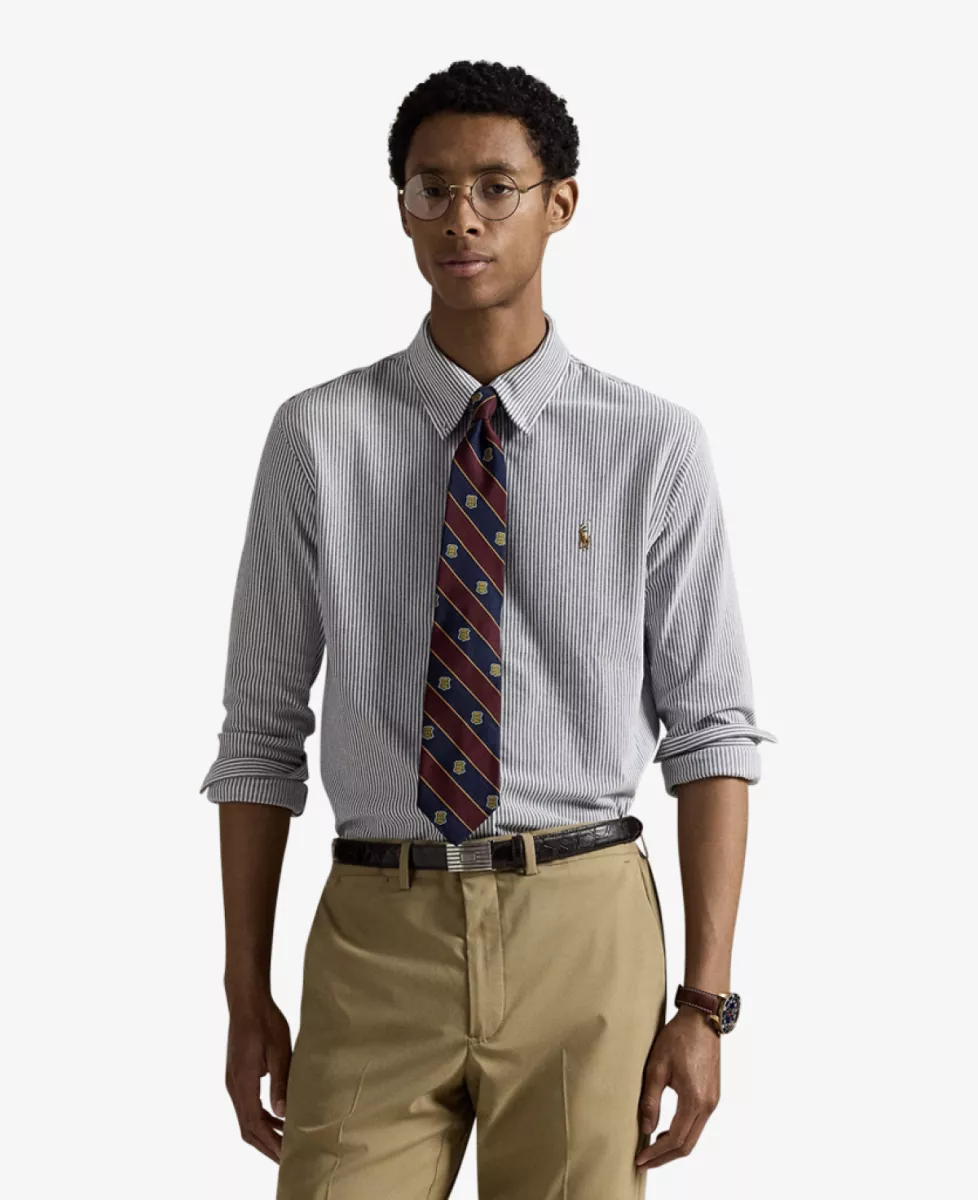 Dit gestreepte overhemd van Ralph Lauren combineert moeiteloos klassieke stijl met modern comfort. Geïnspireerd op twee iconen uit de Ralph Lauren-collectie, verenigt het de verfijnde uitstraling van een Oxford-shirt met het luchtige, comfortabele gevoel van de katoenen mesh-stof die bekend is van het iconische poloshirt. Gemaakt van 100% katoen, biedt dit overhemd een ademende en stijlvolle keuze voor elke gelegenheid.