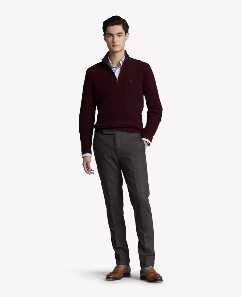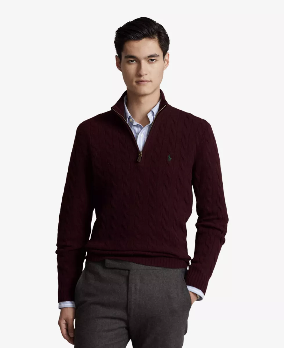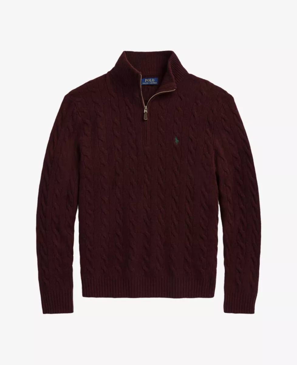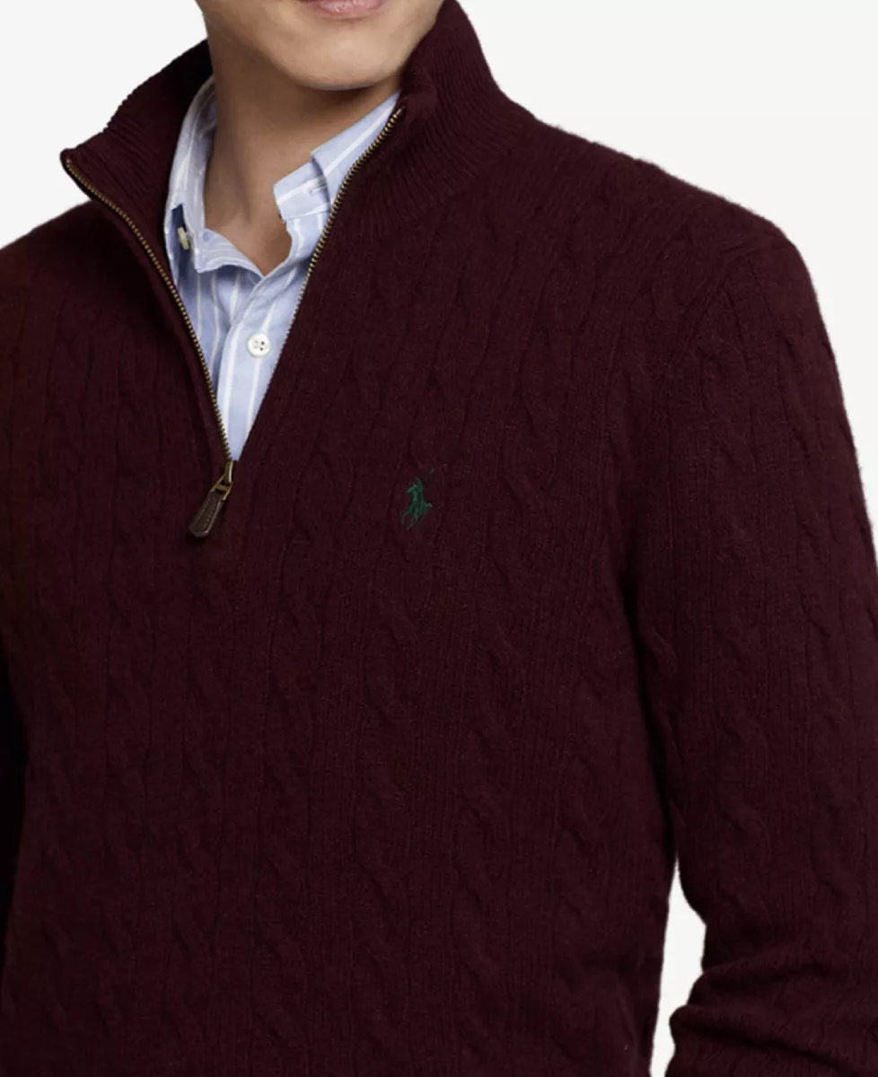 Deze trui van Ralph Lauren met kwartrits is gemaakt van een verfijnde mix van Italiaanse wol en kasjmier en uitgevoerd in het iconische kabelbreisel van Ralph Lauren. Voorzien van een ribgebreide col, suède ritstrekker, lange mouwen met geribde boorden en een ribgebreide zoom. Het geborduurde ponylogo op de borst maakt het geheel compleet. Regular fit voor een klassieke, maar moderne uitstraling.
