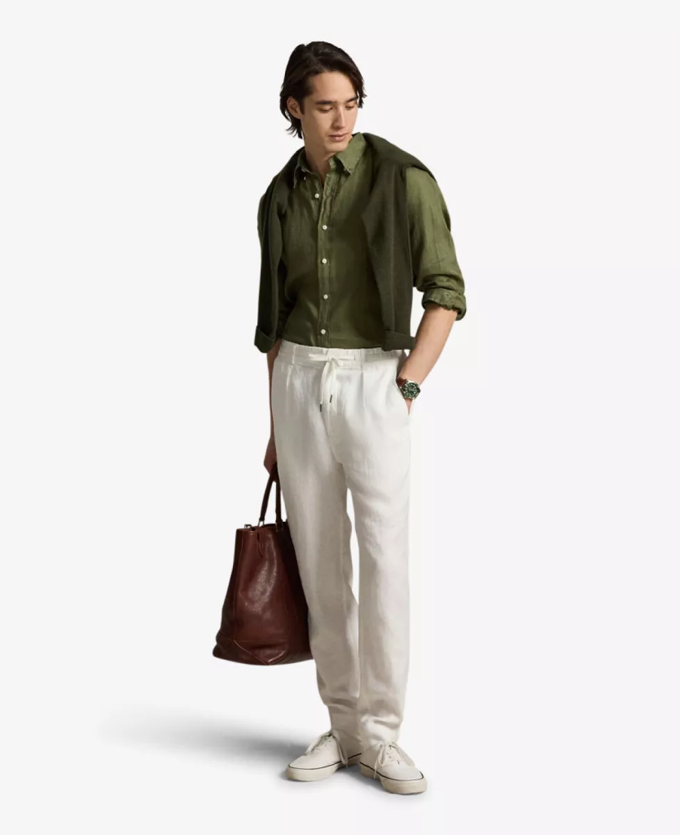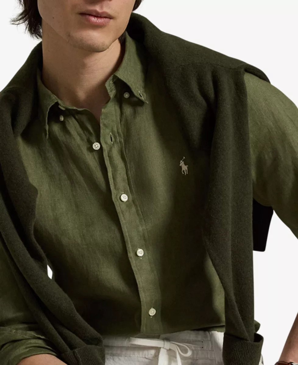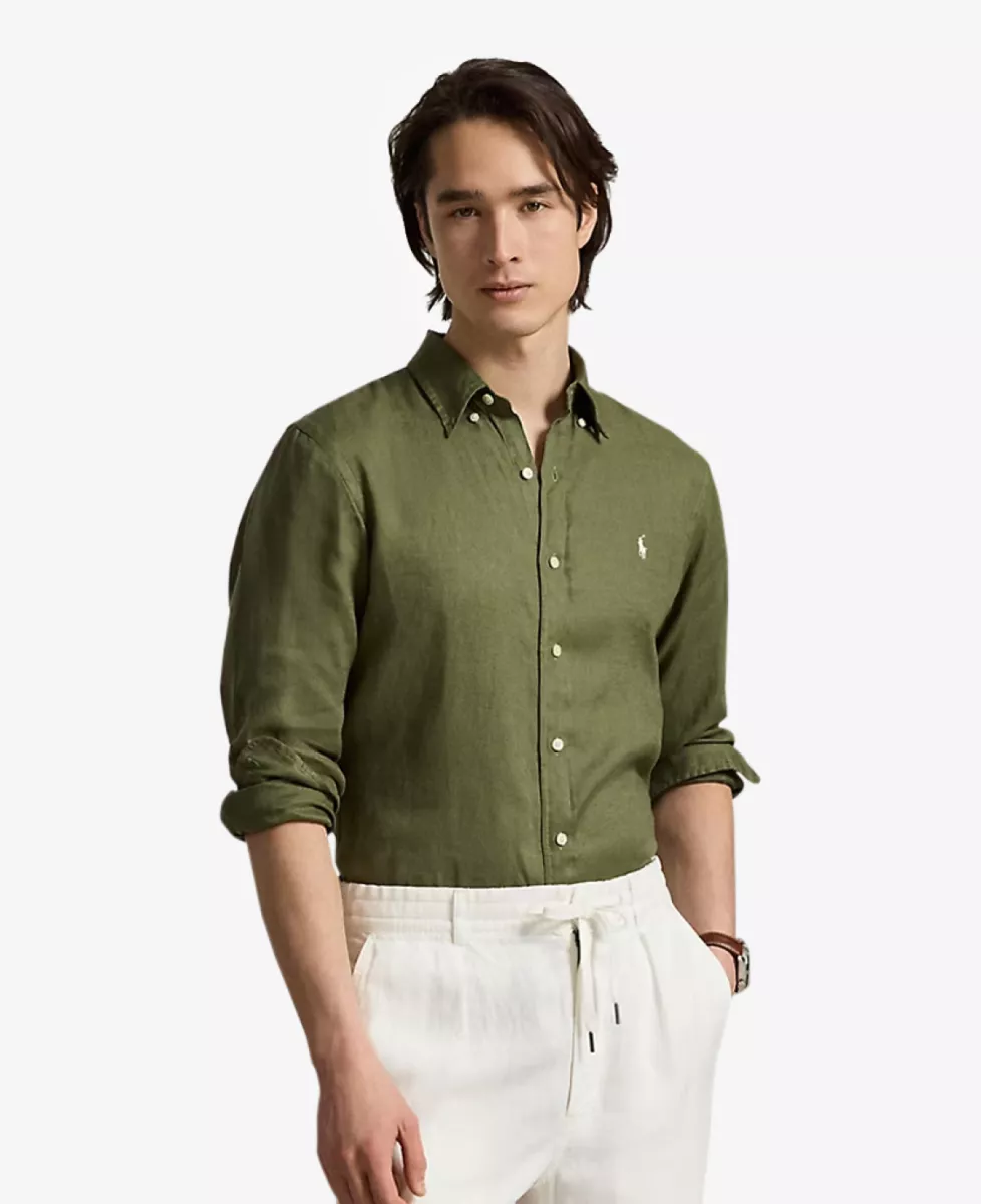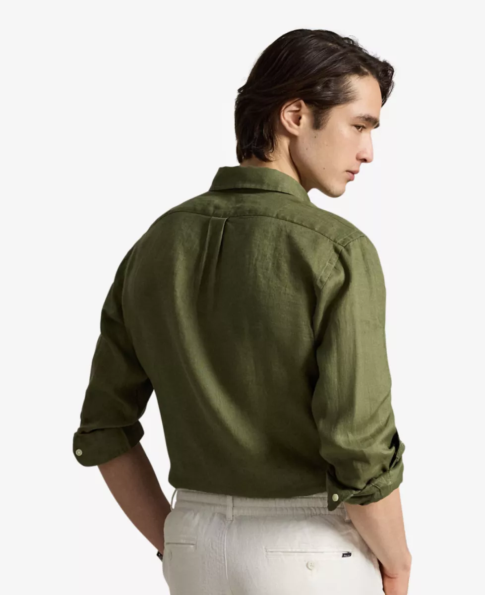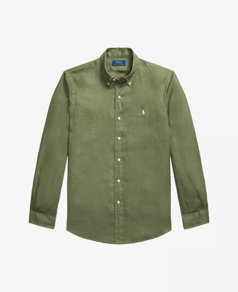 Zomers overhemd van Polo Ralph Lauren in olijfgroen. Dit overhemd is gemaakt van lichtgewicht, ademend linnen en is daardoor perfect voor de warme dagen. Een tweedelige, geplooide rugpas zorgt voor een comfortabele pasvorm en meer bewegingsvrijheid. Met het kenmerkende geborduurde logo op de linkerborst.