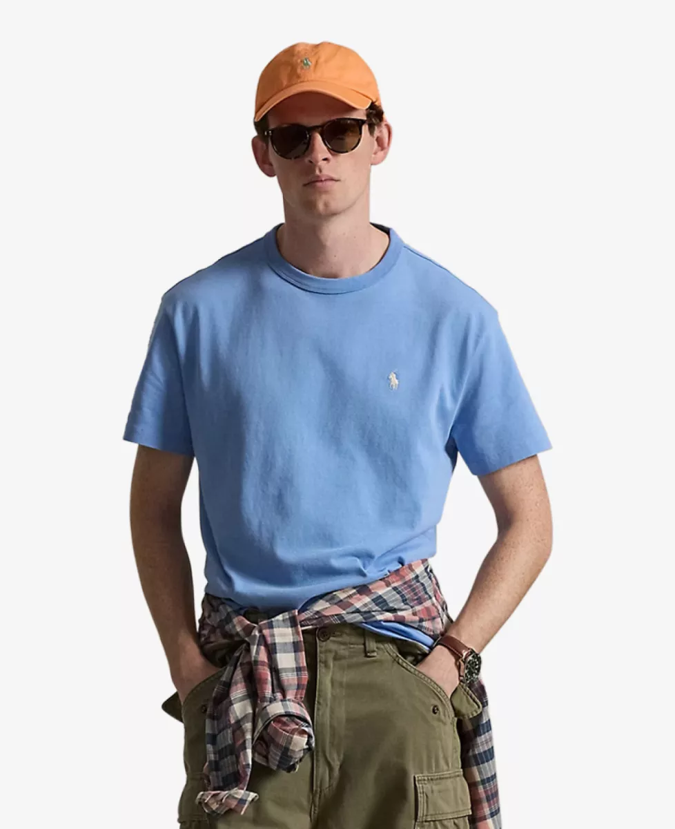 M Classics T-shirt van Polo Ralph Lauren in lichtblauw. Dit katoenen jersey T-shirt, is een Polo-essential. Met het kenmerkende geborduurde logo op de borst is dit shirt een tijdloze toevoeging aan de garderobe.
