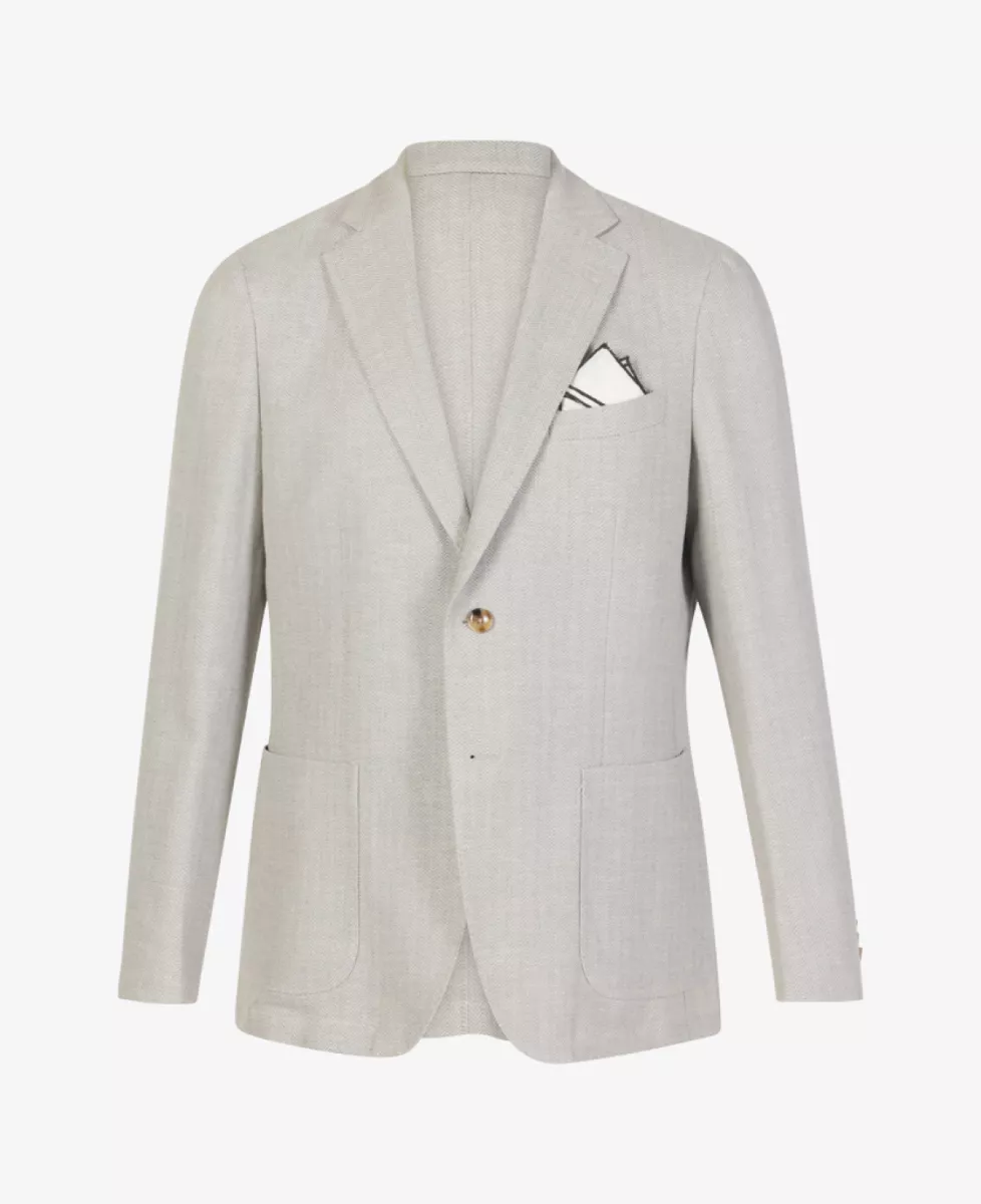 Blakely colbert van Seven Dials in lichtgrijs met een structuur dessin en lange mouwen, reverskraag, knoopsluiting, opgestikte zakken en pochetzak.