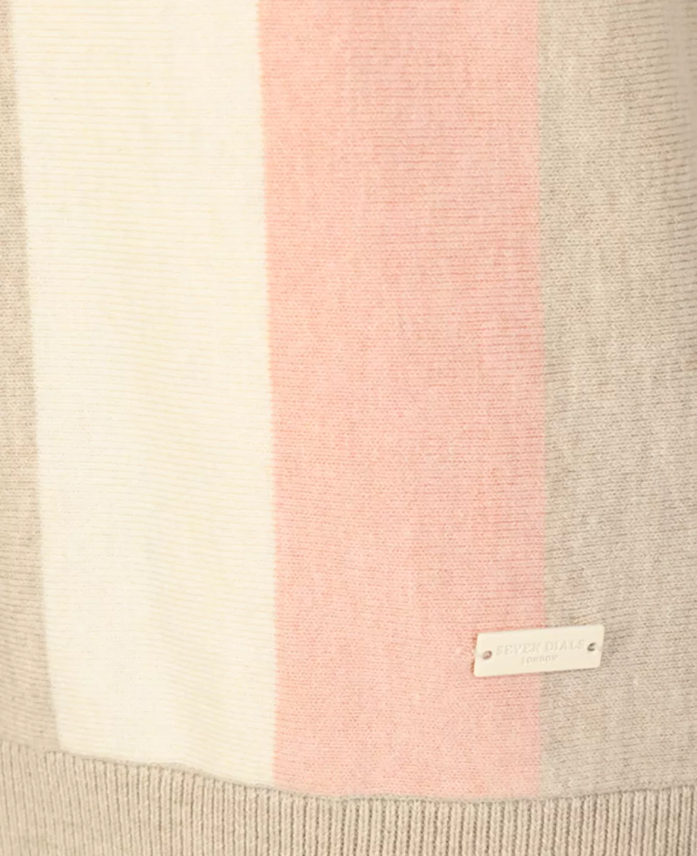 Een luchtige en zomerse gebreide polo van Seven Dials, gemaakt van 100% katoen. De frisse streepprint geeft de polo een speelse uitstraling, terwijl de kraag met ritssluiting zorgt voor een nette, verzorgde look. Hierdoor is dit item perfect voor warme dagen, maar ook prima te dragen in een meer formele setting.