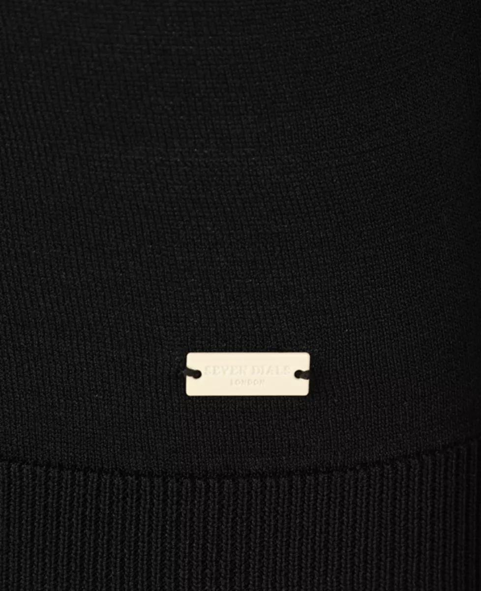 Een lichtgewicht gebreide polo van Seven Dials London, gemaakt van een viscose‑nylonmix. De polo heeft een ronde hals en het materiaal voelt soepel aan.