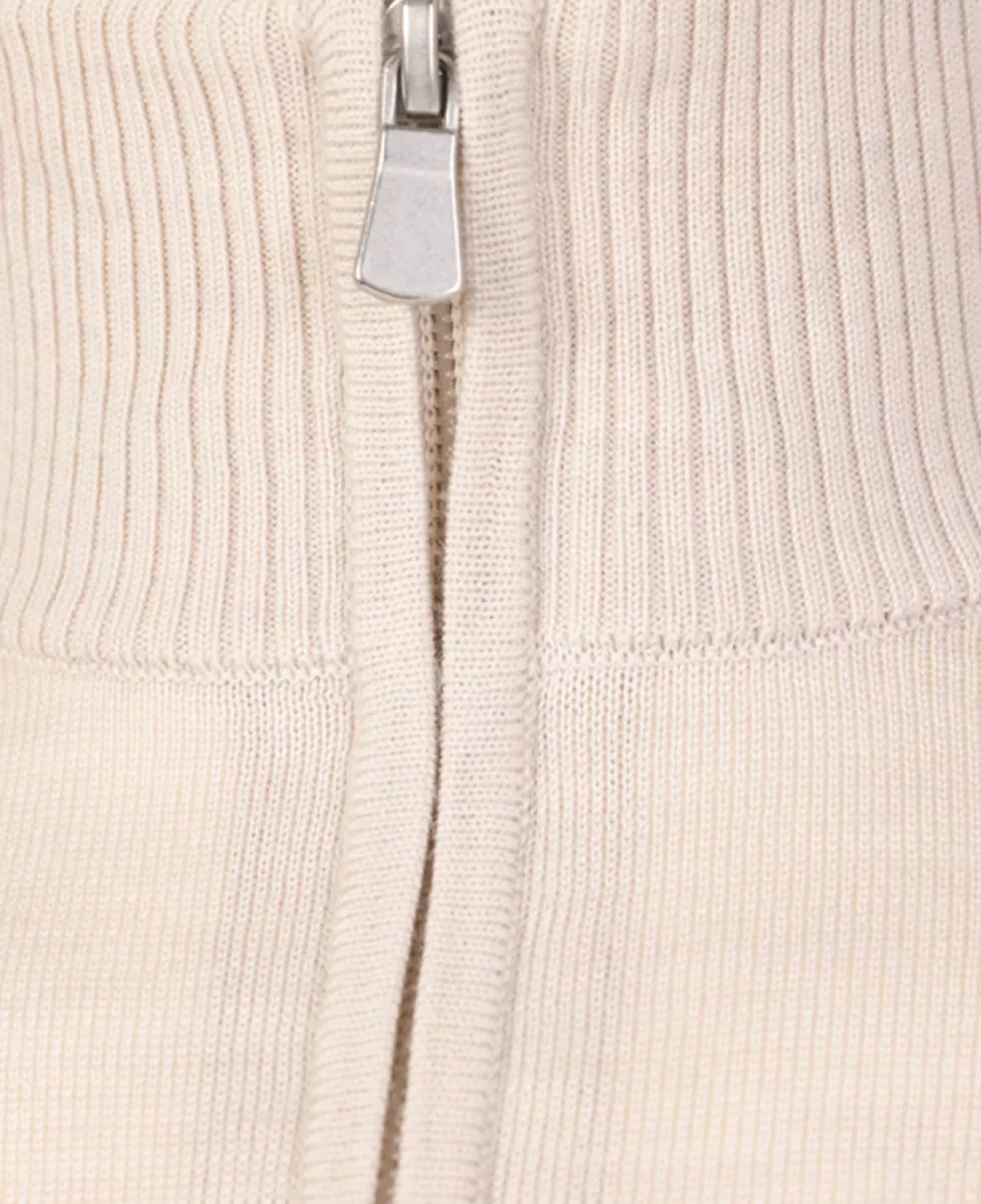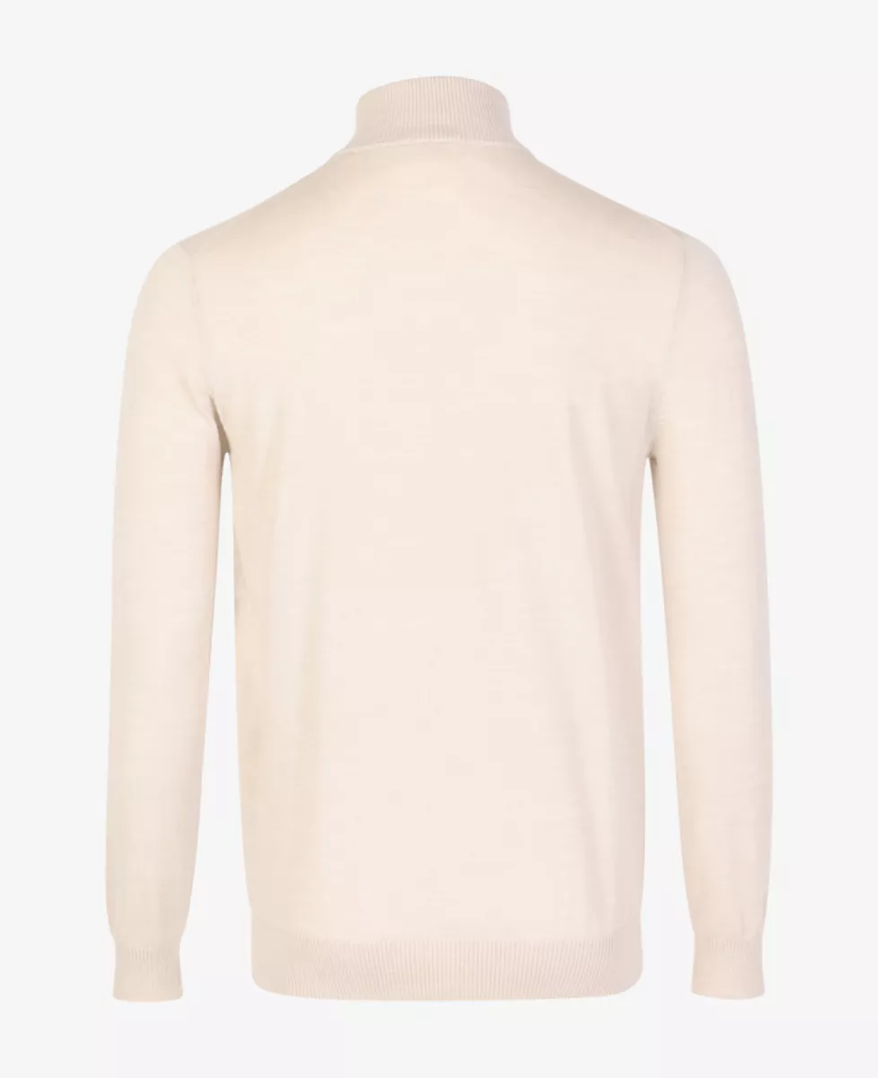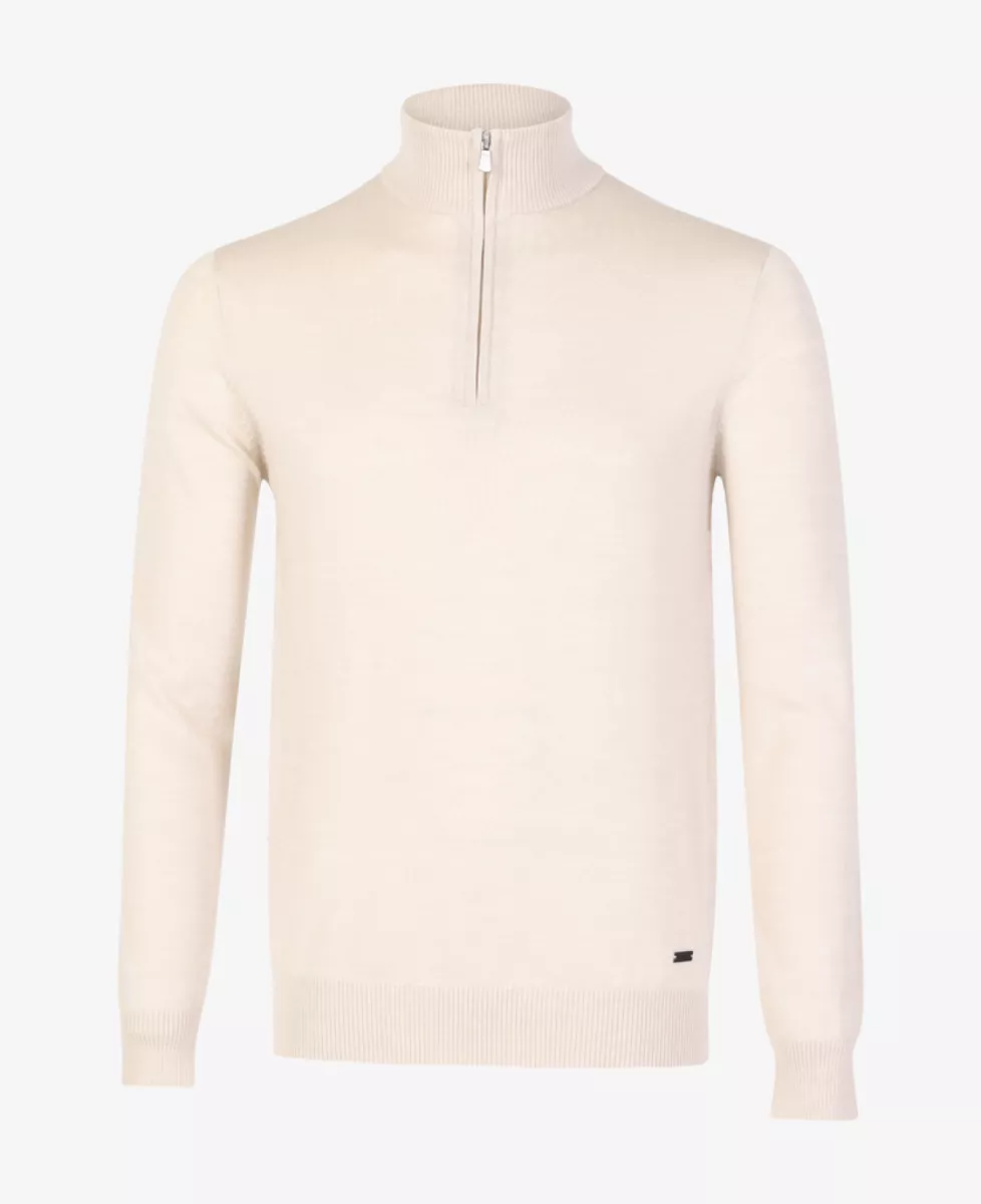 Halfzip trui van Seven Dials in beige, gemaakt van 100% merinowol.