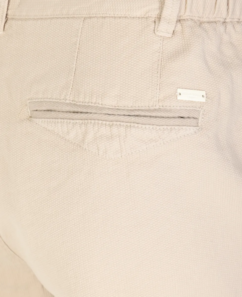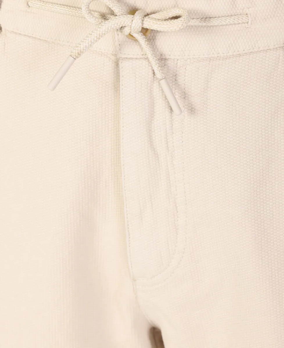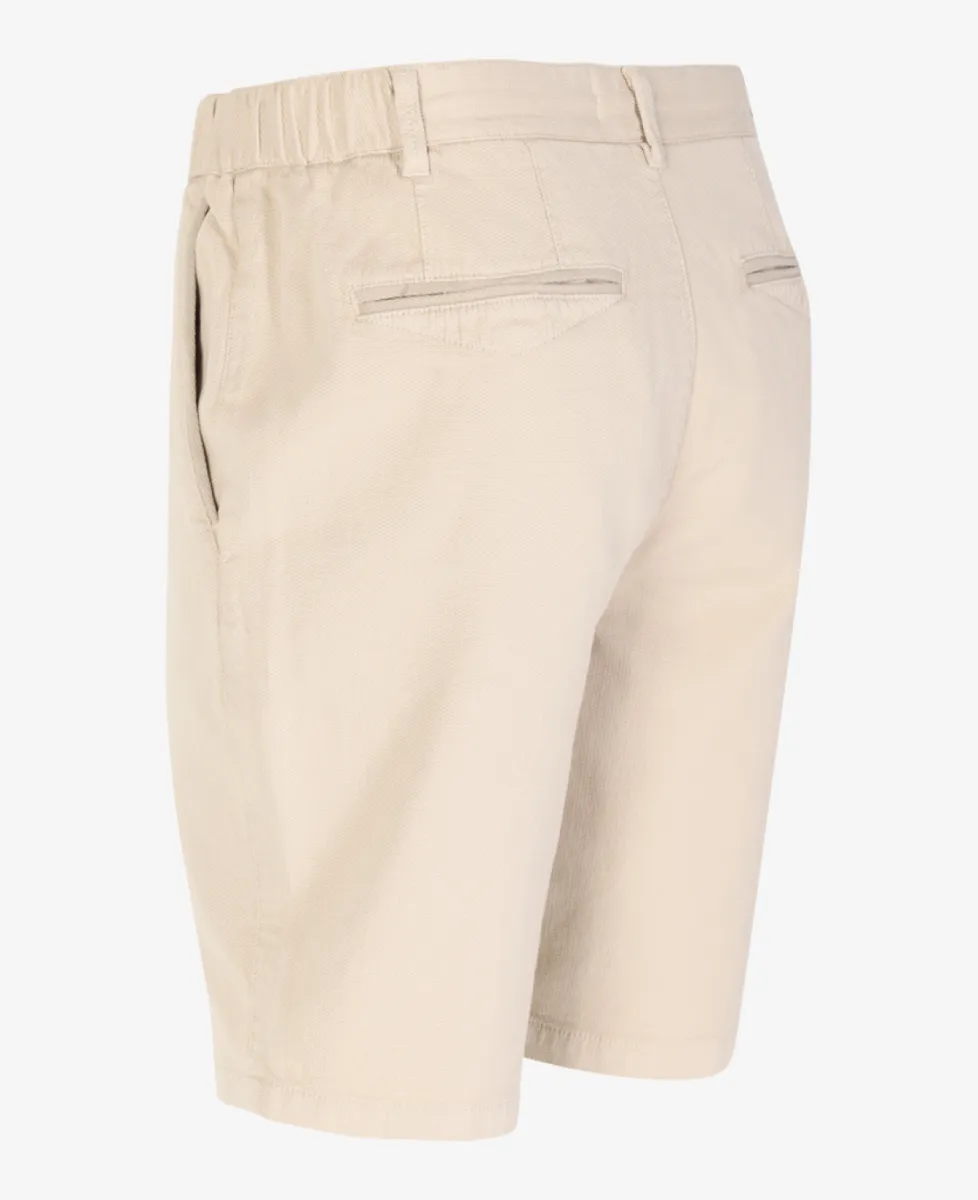 ‘Audel’ Short van Seven Dials. Deze korte broek combineert comfort met een stijlvolle uitstraling. De subtiele geweven structuur geeft de short een verfijnde, moderne look. Gemaakt van katoen en elastaan voelt de stof ademend en comfortabel aan, met genoeg stretch voor extra bewegingsvrijheid. De elastische tailleband met trekkoord zorgt voor een fijne pasvorm, terwijl de riemlussen de mogelijkheid bieden om de short ook iets gekleder te dragen.