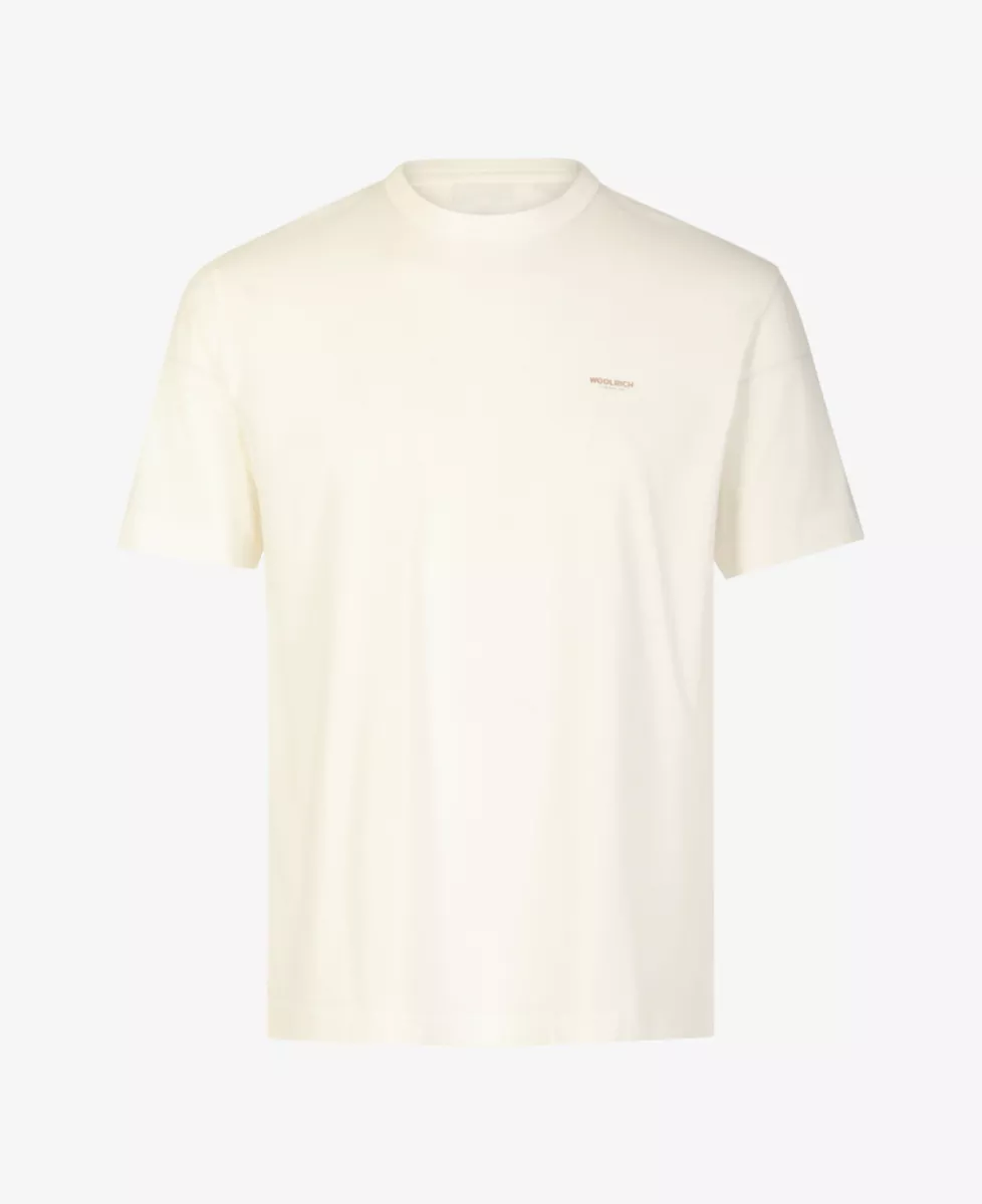 T-shirt van Woolrich in wit met logo op de borst. Dit shirt heeft een losvallende pasvorm en ronde hals.