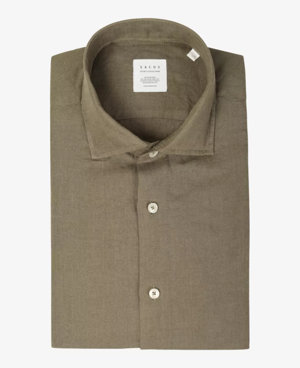 Overhemd van Xacus in groen. Deze is gemaakt van 100% hoge kwaliteit linnen.