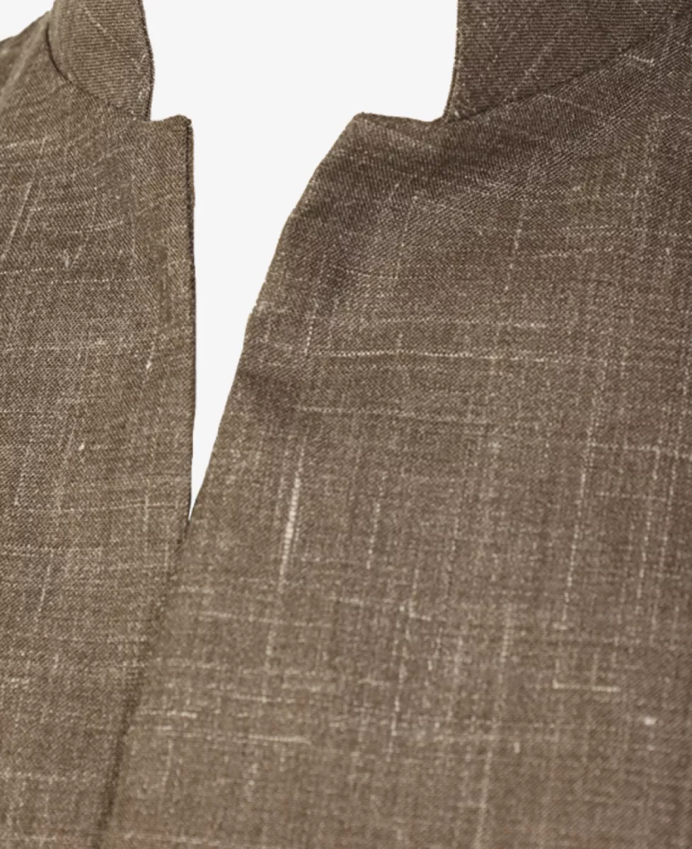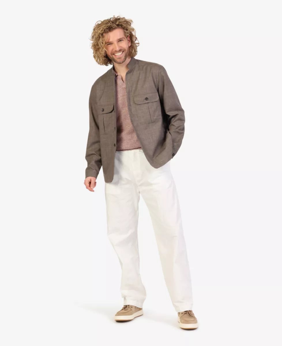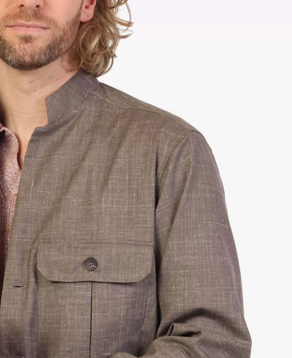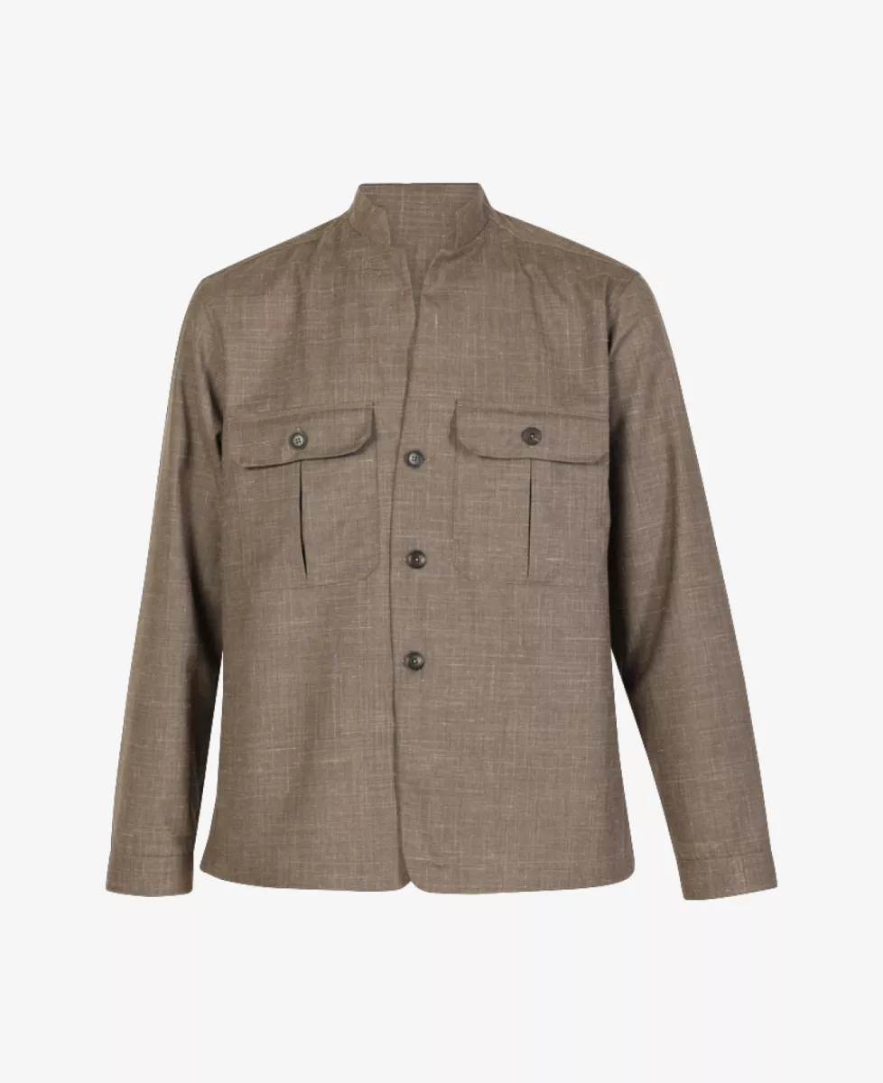 Overshirt van Xacus in gemêleerd taupe, met opstaande kraag, borst- en steekzakken en knoopsluiting. Dankzij de mix van scheerwol, zijde en linnen is dit overshirt een elegante toevoeging aan de lente- en zomergarderobe.